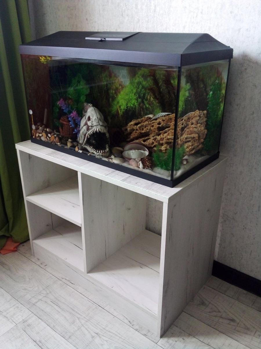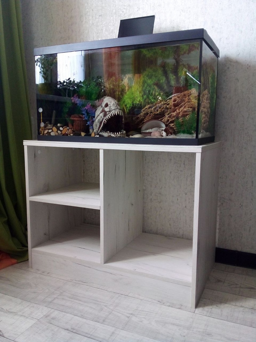 Заказ 00000681974 (996899), "Обувница Нино 22 BMS". Приобрела обувницу, но использую не по назначению. Очень нужна была крепкая устойчивая тумба для 100-литрового аквариума. Ранее уже приобретала мебель с похожей конструкцией, поэтому была уверена, что эта модель со своей задачей справится. И я не ошиблась. Конструкция крайне простая и лаконичная: без задней стенки, без дверей, очень устойчивая. Три открытые полки достаточно вместительны. Размер и цвет выбрала по своему усмотрению. Качество хорошее, без сколов и царапин. Вся необходимая фурнитура для сборки в комплекте. Цена была в три раза дешевле, чем я расчитывала для этих целей, а с учетом накопленных бонусов оплатила половину. Доставили через 10 дней. Не могу не упомянуть бесплатную доставку, что тоже очень радует. Сборка такая простая, что и ребенок справится. Покупкой довольна на все 100%.