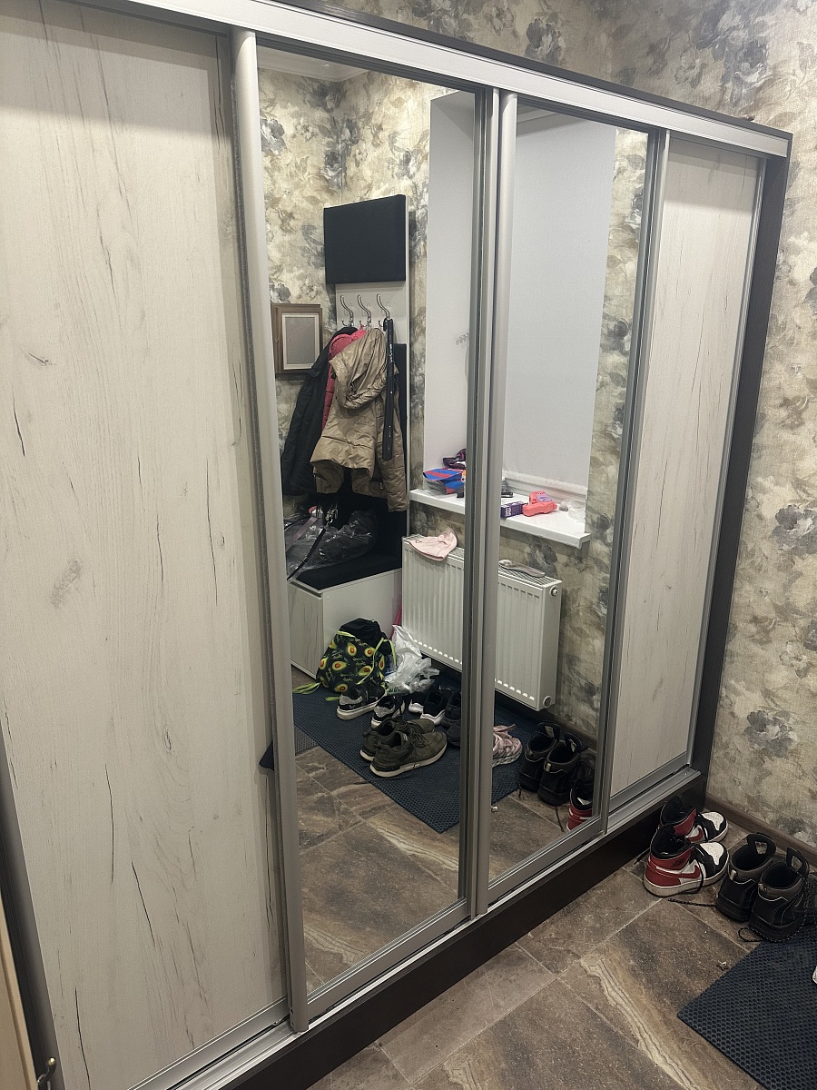 Хороший шкаф. Удобная конфигурация наполнения комплектующими. Качество хорошее, собирал сам. Двери и зеркала пришли уже в собранном виде, что плюс. Пожалел только что заказал не глубже, всё таки для вещей лучше глубину не меньше 800, иначе двери цепляют одежду на вешалках.