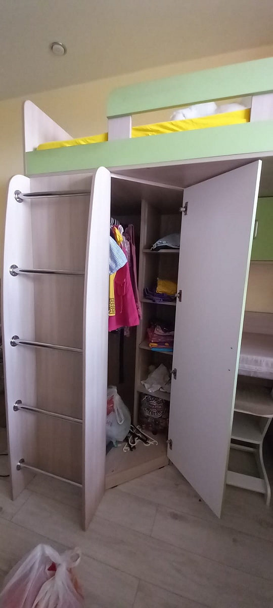 Заказ 00000667136Заказ 00000667136Отличный шкаф! Это не просто шкаф, это шкаф, кровать и стол в одном. Всё так как мы хотели и не дорого. Дочка очень довольна. Только зря отказались от сборки, нашли сборщика на Авито, он приехал, посмотрел и не смог собрать. Собирали сами три дня. Надо было заказывать со сборкой.