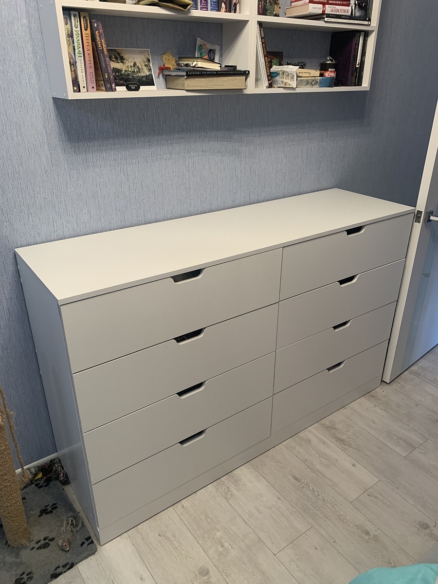 Заказывал этот комод и остался доволен. Размеры не менял, хотя очень удобно, что такая возможность есть. По доставке тоже вопросов не возникло, все хорошо. Заказ №979413