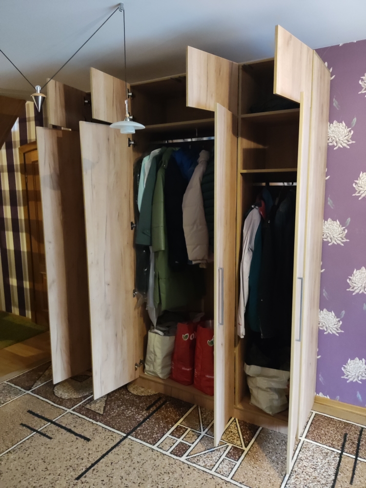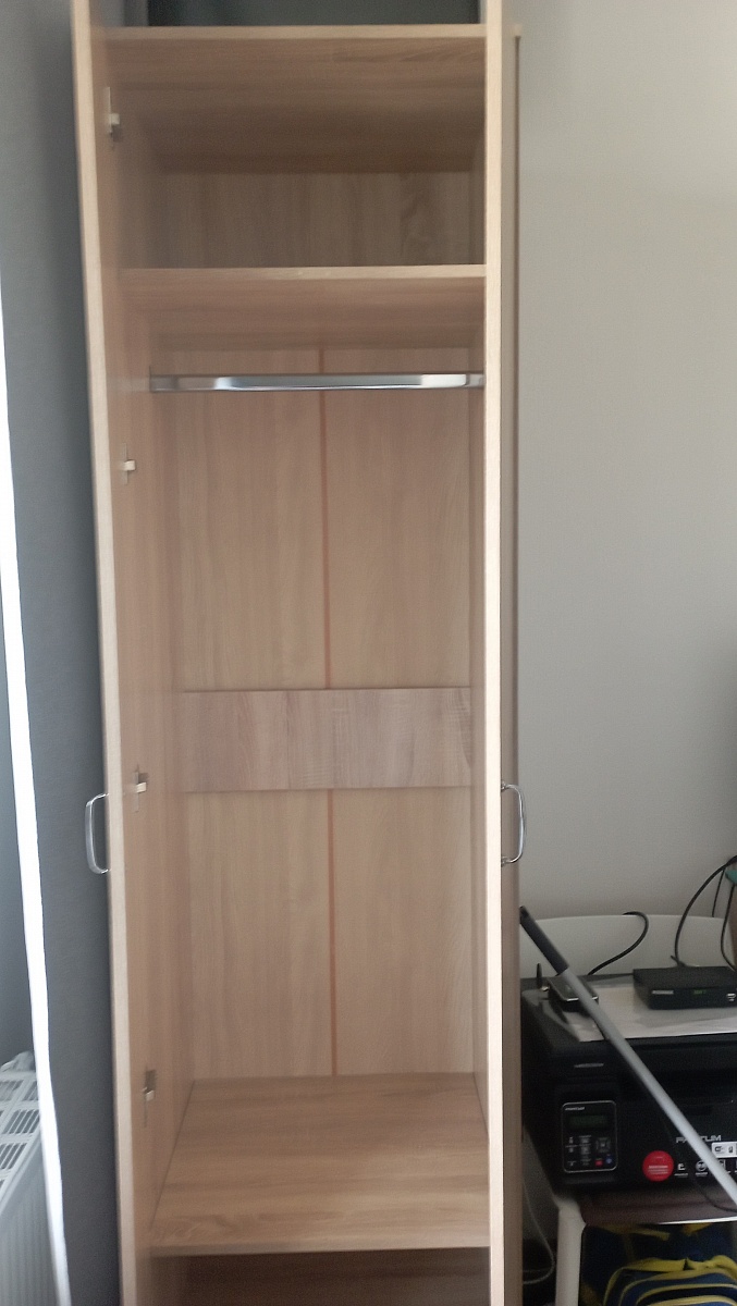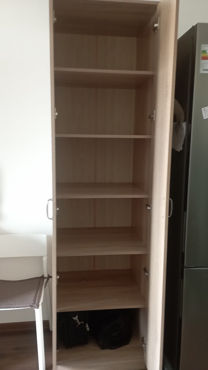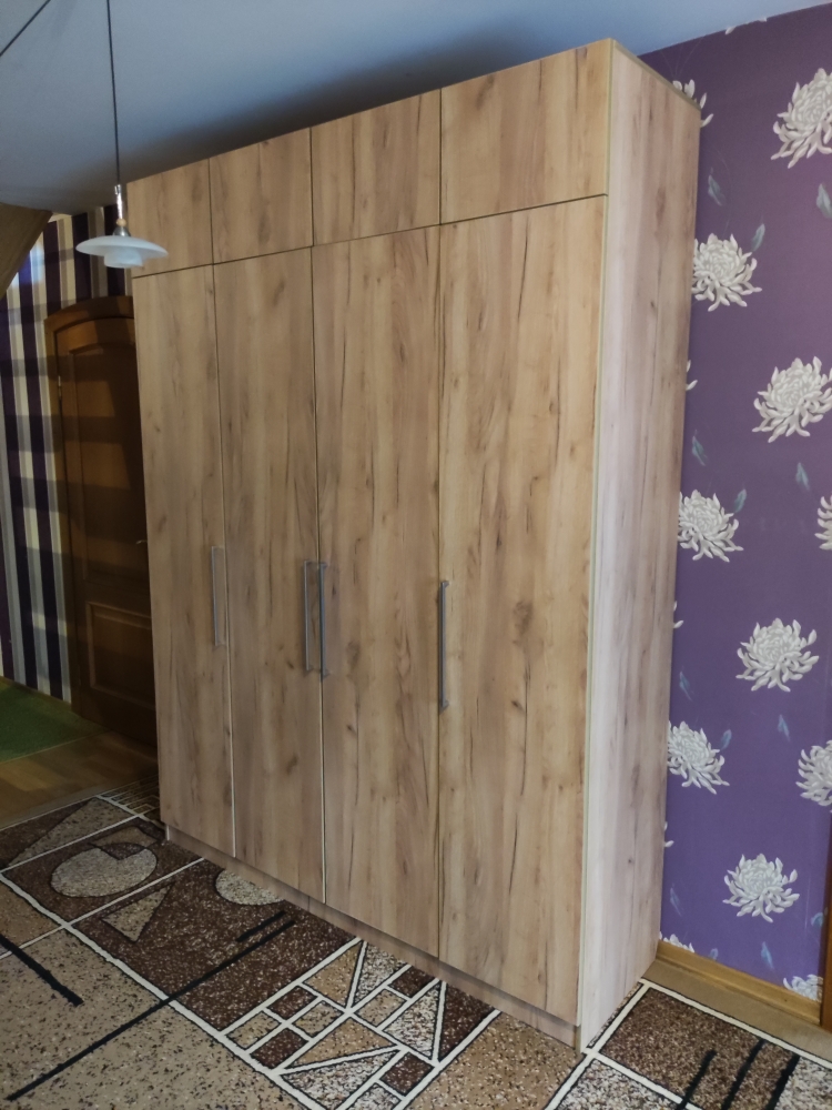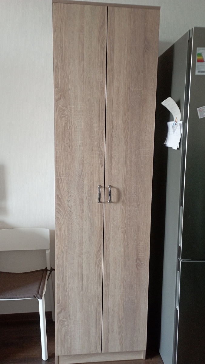 Отличный шкаф, привезли через 3 дня. В студию нужен был узкий шкаф. Изменила размеры под необходимые, цвет дуб сонома. Фурнитура стандартная без доводчиков. В комплекте наклейки для стяжек в тон мебели. Собирали сами, все детали маркированные. Заменили только ручки на заранее приобретенные. Сняла звезду за непонятки с шурупами и гвоздями - шурупы остались, гвоздей не хватило. Не разобрались. Спасибо изготовителю. Все красиво и быстро!