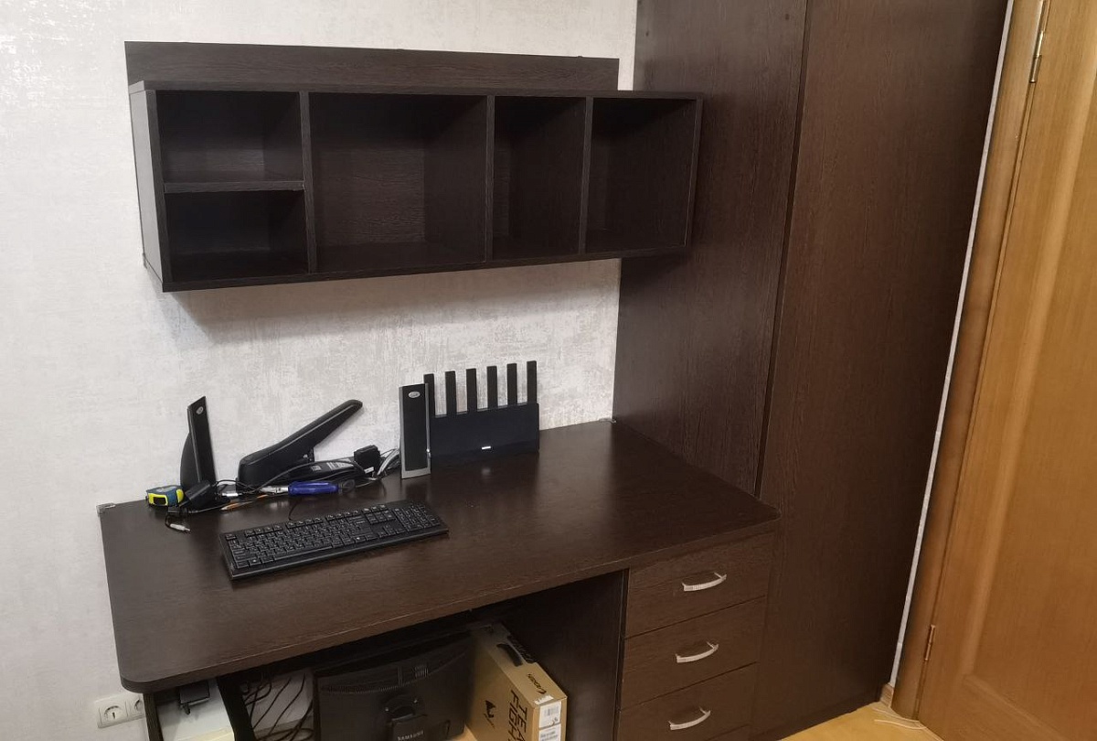 Полка замечательная. Сделали с несколькими изменениями по индивидуальному запросу на основе этой модели, цена выросла не сильно. Повесил, доволен просто до жути И вообще, BestMebel -- исключительные молодцы! Мебель качественная, точность изготовления выше всяких похвал, собирается, как конструктор Lego! Ну и вторая фотка -- немного мебели от Bestmebel, которую я приобрел за последние полтора месяца (стол, шкаф, полка).
