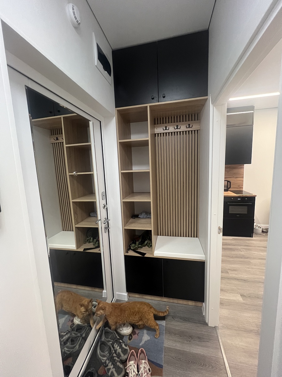 Практичная, удобная, миниатюрная стенка, вписалась очень хорошо. Качество хорошее, правда за такую сумму хотелось получше. Но с нужными размерами сложно было найти. Доставка заняла около месяца.