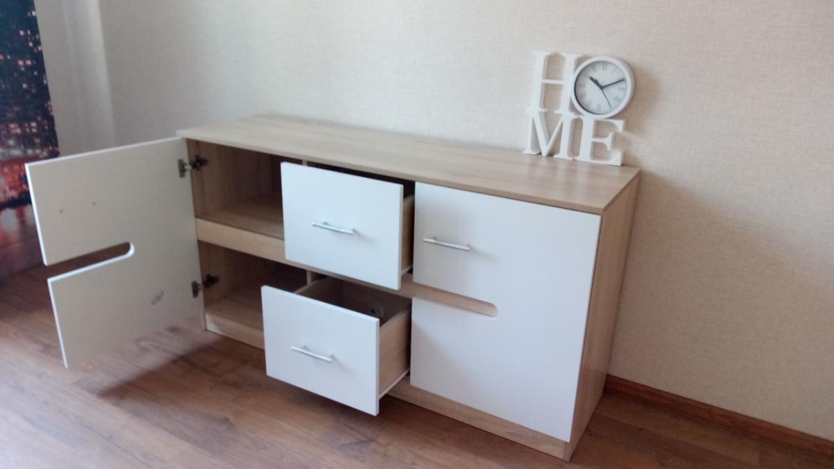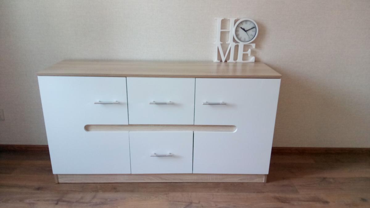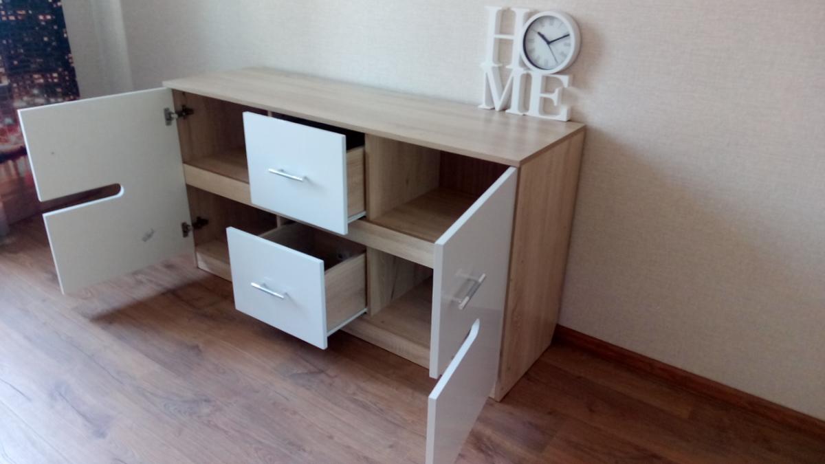 Тумба просто замечательная! Заказали размер 1400х420х743 дуб сонома/белый глянец.Смотрится отлично, вместительная.