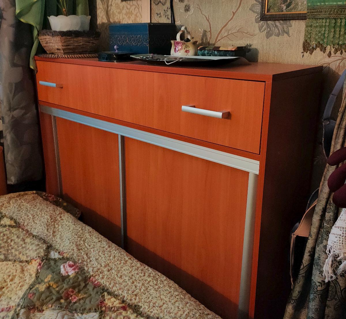 Очень удобный комод с дверцами-купе. Сделан по моим размерам и в моем цвете. Собирается легко.