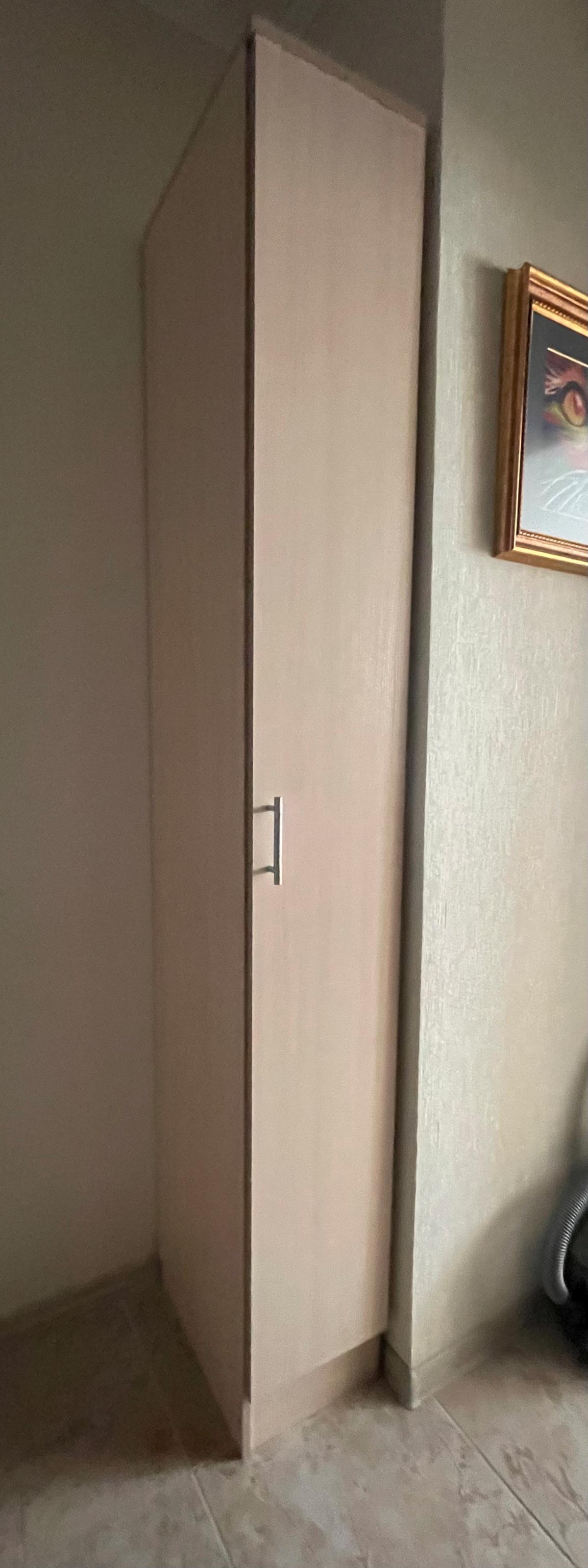 Узкий шкаф хорошо встал в уголок. В нем прекрасно разместилась бытовая химия. Всё в одном месте. Конструкция крепче более широких шкафов этой серии. Три полки на скрытых крепежах, которые и рёбра жесткости, дверь на 5 петлях. Из дополнительного заказаны выпил под плинтус, перфорация и дополнительная полка. С ними можно на месте подстроить высоту полки.Из минусов - при комплектации стали класть фурнитуру под счёт. Раньше насыпали щедро с запасом, сейчас тютелька в тютельку. Не досчитались одного крепежа вкладное полки, хорошо, что оставались от прошлых заказов.Комплектовщики фурнитуры, не жадничайте, пожалуйста!
