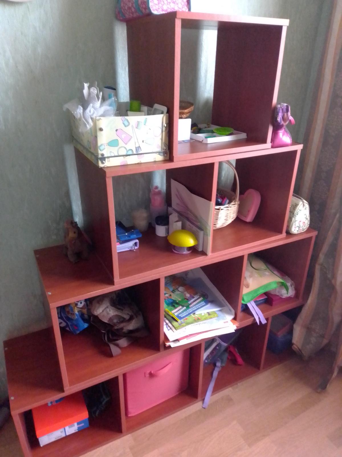 Год назад покупали 2 стеллажа детям. Каждый расставил по- своему. Сначала хотела закреплённые стеллажи,но вариант с раздельными ячейками оказался намного лучше. Собирается быстро. Качество отличное.