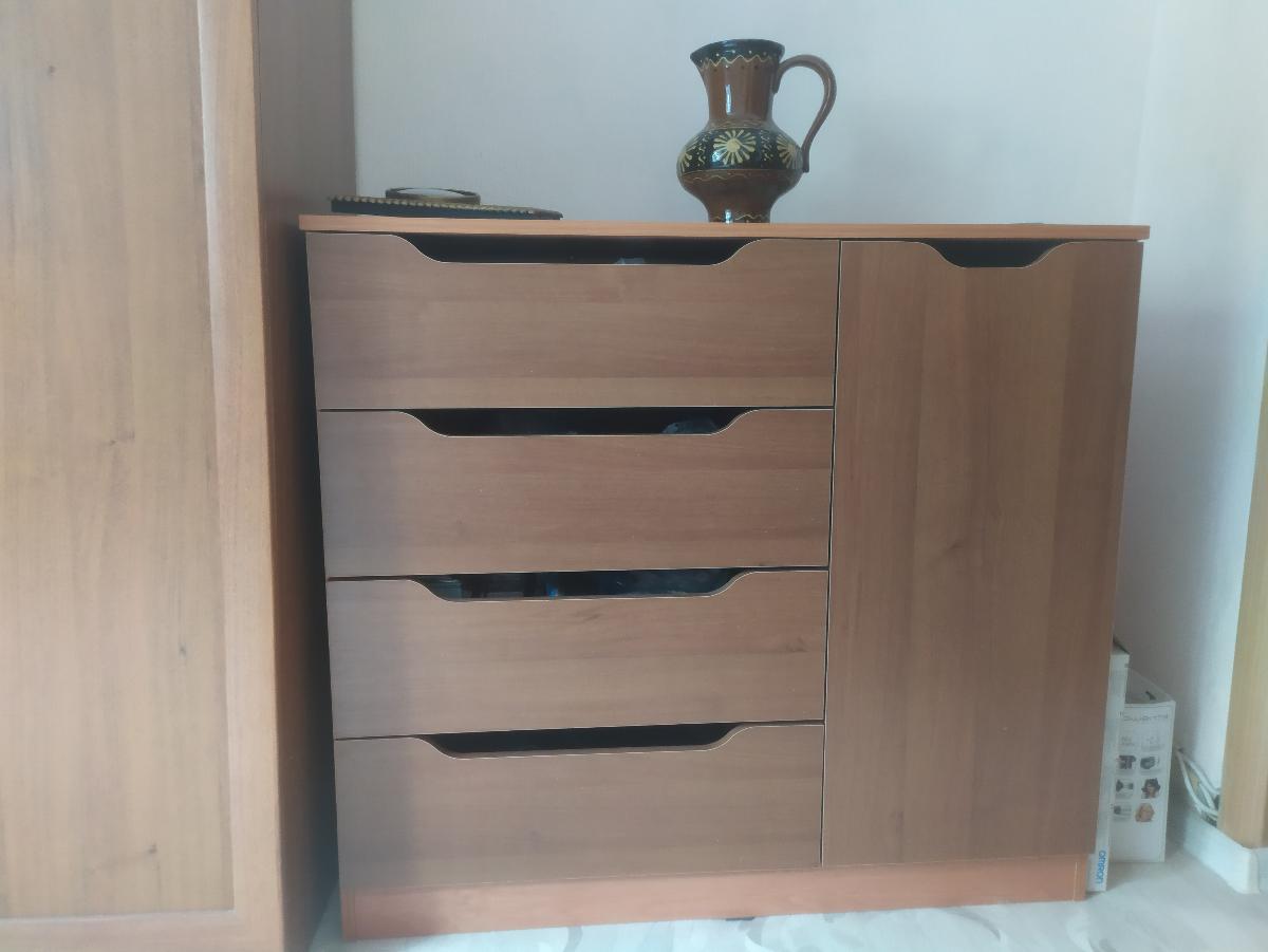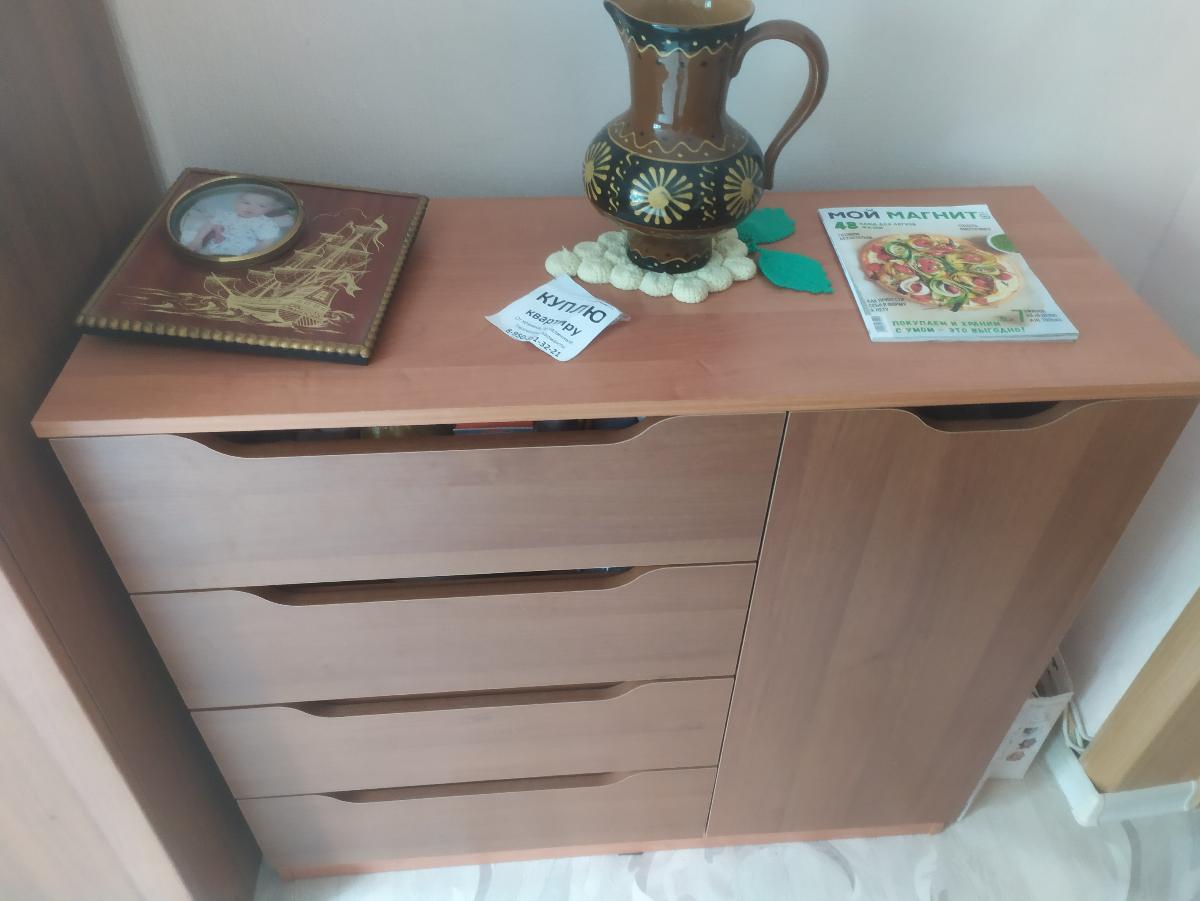 Хороший удобный комод, большой, современный дизайн. Цвет хорошо подошел к шкафу.