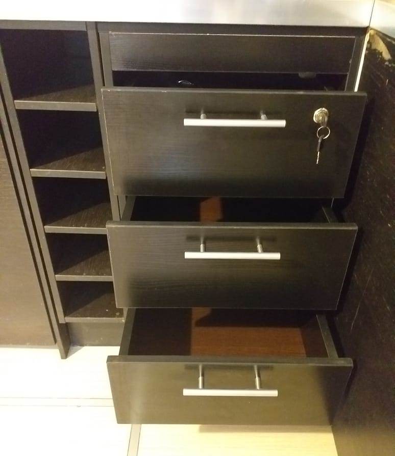 Заказ 00000670690 Тумба мне понравилась. Современный дизайн.Удобно что можно заказать под размер.При сборке всё разметки сошлись. Полочки и ящички функциональные.Постпатла оценку 5 Рекомендую купить..