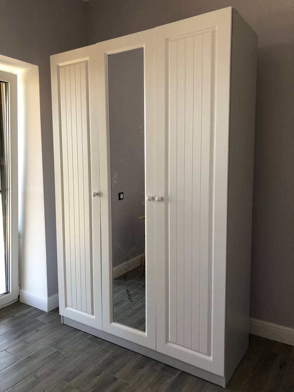 Понравилось буквально всё. Заказывал на сайте ночью, рано утром уже позвонил оператор для подтверждения заказа. Очень грамотно согласовал со мной все детали заказа по цвету, фрезеровке и фурнитуре. Я попросил не делать присадку для ручек, так как собирался ставить свои, это пожелание учли, спасибо! Доставка была очень быстрая – меньше, чем за неделю, до подъезда, совершенно бесплатно. Детали шкафа упакованы в картонные коробки, фасады между собой проложены пенной плёнкой. Штангу упаковали в стейтч-плёнку. Все детали шкафа доехали без единой царапины. Сборка лёгкая, благодаря стикерам на каждой детали (у других производителей наклеек нет, и приходилось рулеткой замерять детали, чтобы понять, где какая.Удобно, что все детали между собой крепятся одинаково – евровинтами (конферматами), и не имеет знания, в каком порядке ты их скрепляешь.Сама фурнитура в комплекте очень качественная – вся металлическая или деревянные шканты, пластика нет, как бывает у других фабрик. Пластиковые были только подпятники, чтобы шкаф скользил по полу, если нужно передвинуть. Петли, которые были в комплекте, качественные, и их много – нагрузка на каждый фасад равномерная.Зеркало крепится очень надежно – в комплекте много специальных креплений, не боишься, что оно выпадет.Качество фасадов очень понравилось, фрезеровка классическая и в то же время выглядит современно, подходит под скандинавский стиль в интерьере.Шкаф использовали для гардероба жены, очень вместительный и красивый. Брали в сочетании серый корпус, а фасад – белый структура дерево, сочетается отлично.