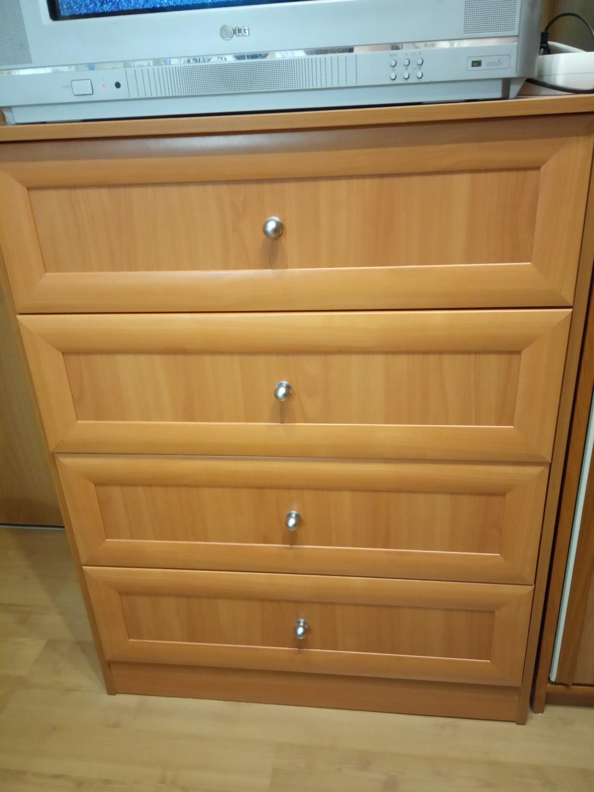 Комод заказала в детскую вместо тумбы под телевизор. Красивый и надёжный, пользуемся несколько лет без проблем, ничего не сломалось,  хотя в нижнем ящике часто использующиеся в течение дня  игрушки. Фурнитуру подобрала аналогичную, вписался в имеющийся гарнитур. Спасибо. Рекомендую к покупке.
