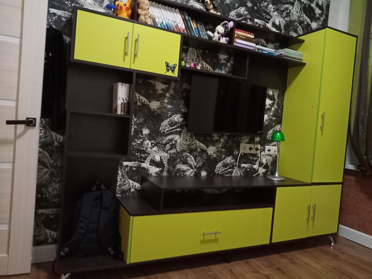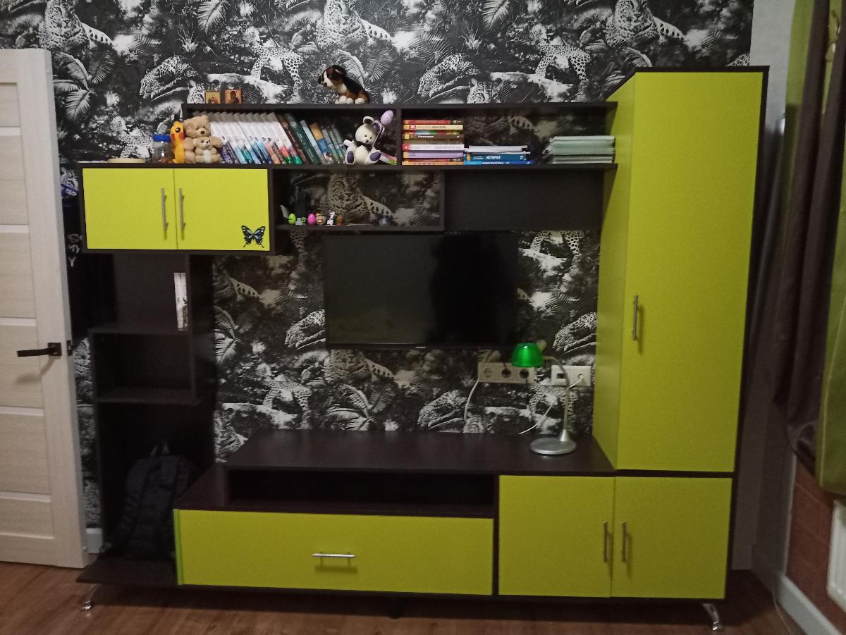 Стенку заказывали 01.04.2021. +Привезли нам ее раньше назначенного срока.+Стенка недорогая.+Наличие конфигурации. Как только моя дочь увидела этот лаймовый цвет - влюбилась, уже другую брать никакую не захотела.+Доставили в целостности и сохранности.+Персонал вежливый, компетентный. У нас возникла небольшая проблема в ходе оформления заказа - ее быстро и легко решили.-Были небольшие затруднения в сборке, немного непонятная инструкция.В целом, мы очень довольны данной покупкой. Очевидное преобладание плюсов говорит само за себя.