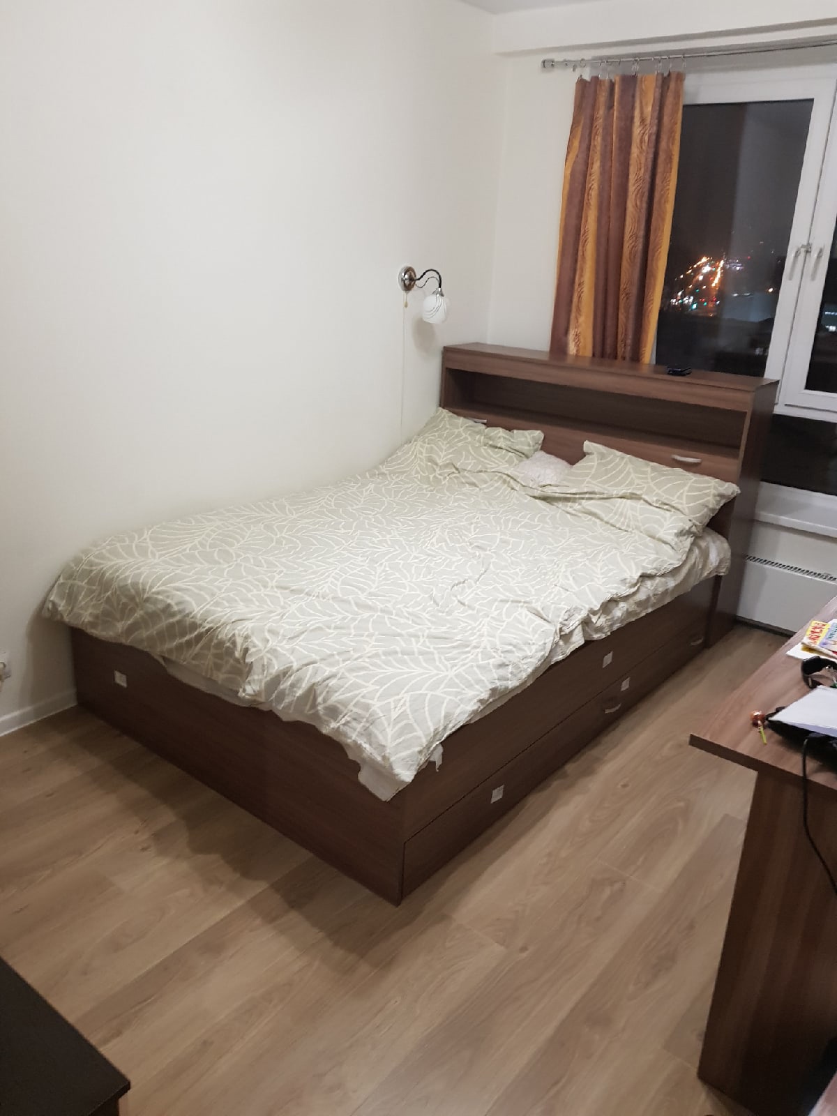 Сборку производил самостоятельно, прямо скажу - лучше не морочиться и заказывать со сборкой, схема неочень читаема, до некоторых моментов приходится доходить методом научного тыка.По мебели проблем вообще нет. ящики вместительные, шкафчик в изголовье удобен для хранения редко используемых вещей. Что особенно понравилось, то что есть конфигуратор и можно поменять цвета панелей. ясень шимо темный совпал с той мебелью которая у меня уже есть (тоже ясень)