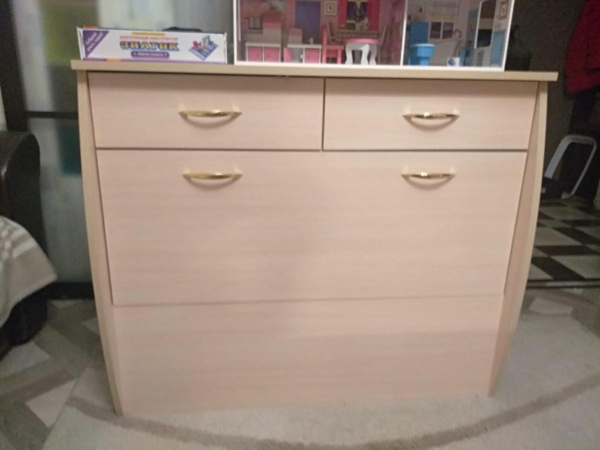 Тумбу привезли вовремя, доставили в срок. По цвету тумба подошла к нашему интерьеру,очень удобная, в неё легко вмещается двухспальное одеяло и подушки. В верхние выдвижные ящики можно убрать много разных лишних предметов.  Цена за товар очень порадовала. Качество изделия высокое. Заказ 00000625222