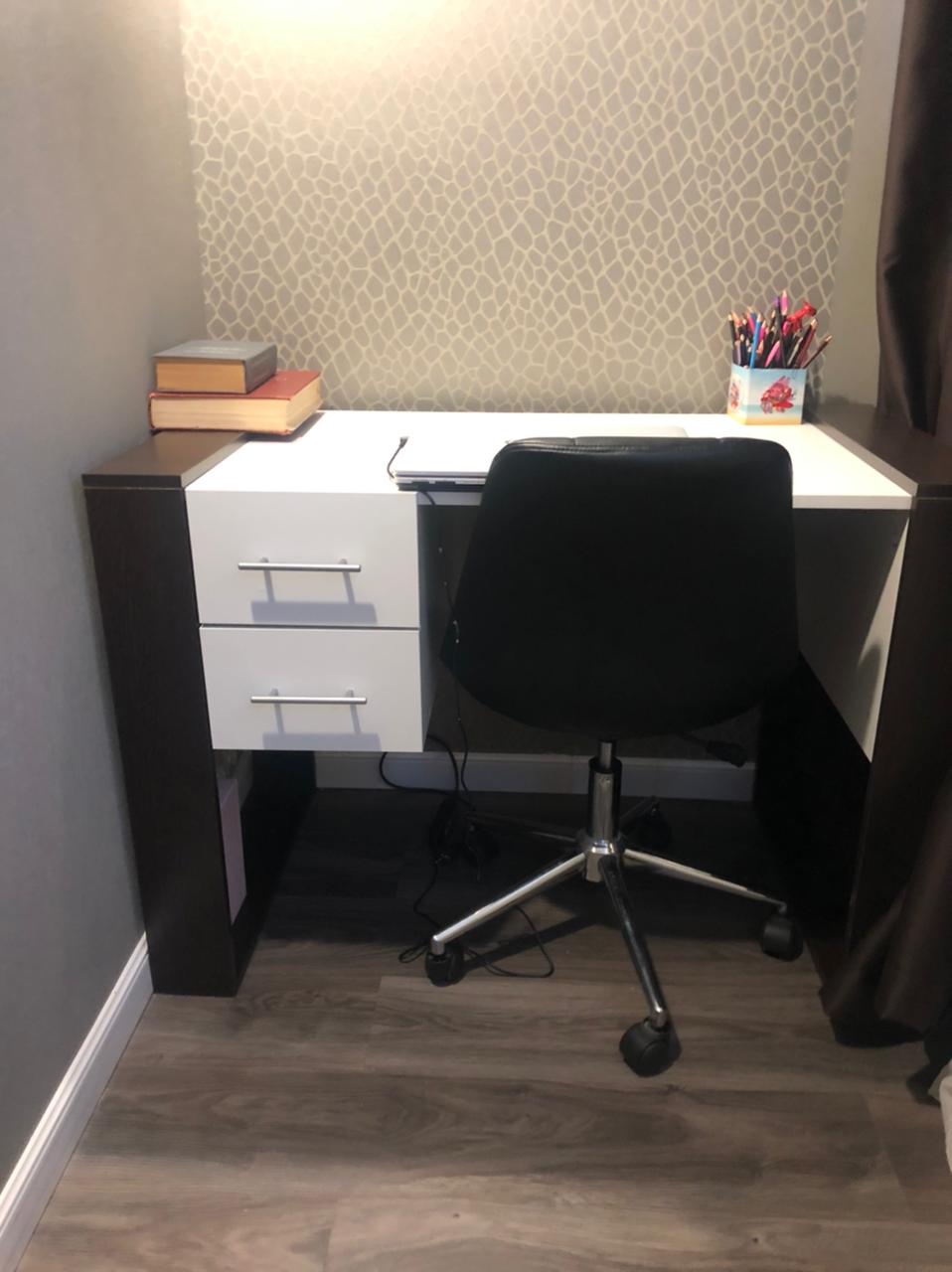 Заказывала стол под заказ с моим цветом белый + венге, пришёл очень быстро, в нужном цвете, очень вписался в интерьер, легко собрали. Смотрится стильно