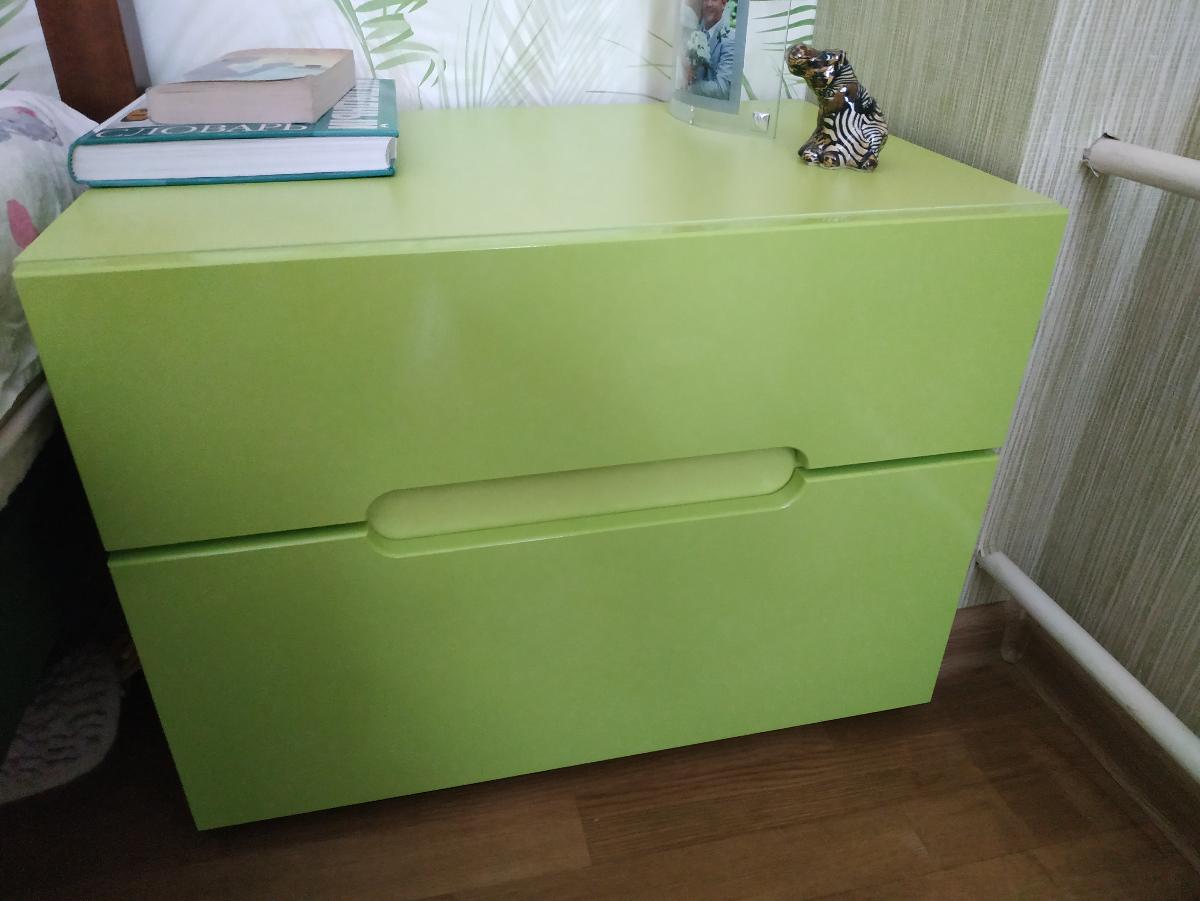 Искала прикроватную тумбу салатового цвета, прек\расно вписалась в интерьер. Выполнили четко по размерам. Очень быстрая доставка.