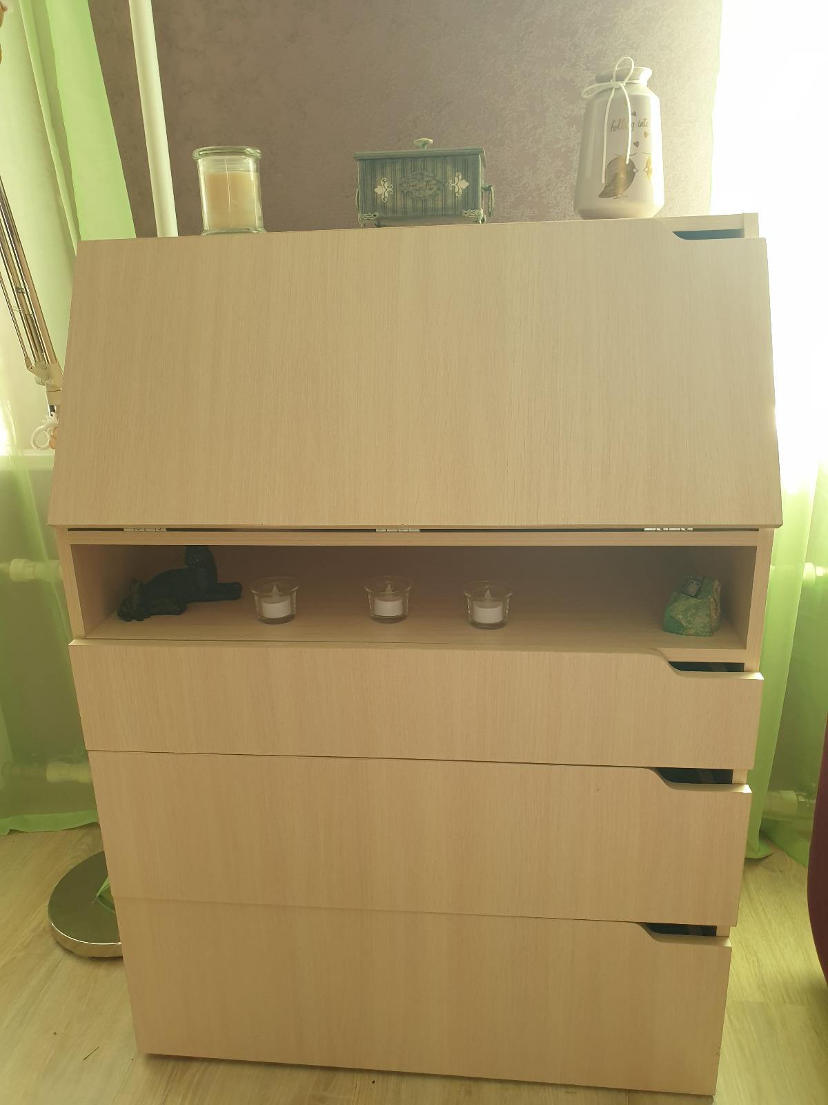 Комод замечательный, очень понравился. Взял стандартных размеров, визуально думал чуть больше будет, но то каким он аккуратным получился в итоге - так даже лучше. Места занимает мало, при этом вместительный. Функциональная вещь. Порадовала ширина столешницы 40 см. По телефону общение приятное. Единственное пожелание изготовителям - нужна более подробная пошаговая инструкция сборки, с крупными картинками винтов и саморезов, чтобы понимать какой куда применить. Большое спасибо за изделие! Если что-то понадобится из мебели, обращусь ещё.