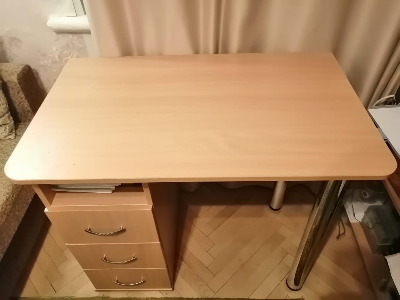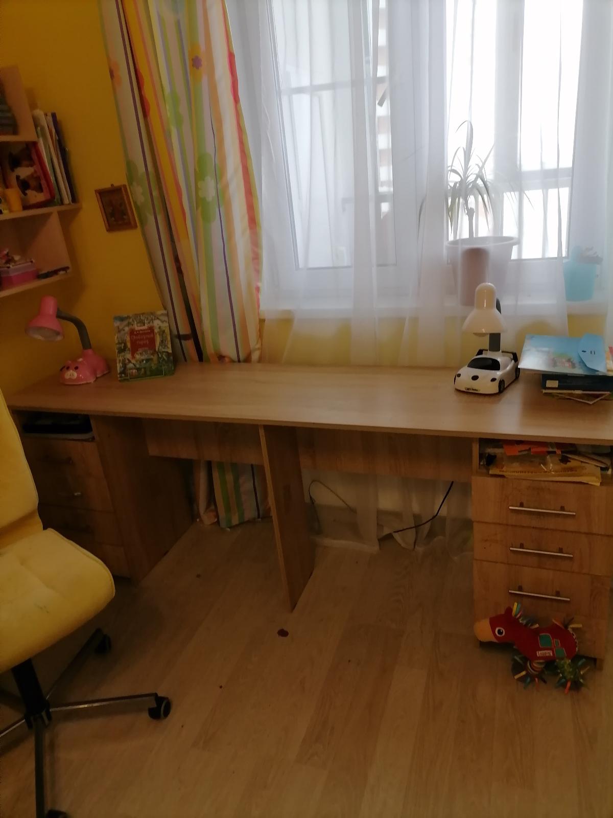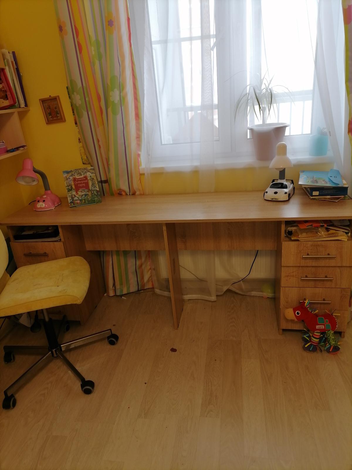 Стол удобный. Заказали узкий и длинный, чтоб не смотрелся громоздким. "Встал" вдоль окна. Много ящиков. Для 2-х школьников оптимальный вариант. Жалеем, что не заказали кромку на столешнице. Будущим покупателям советую это учесть.