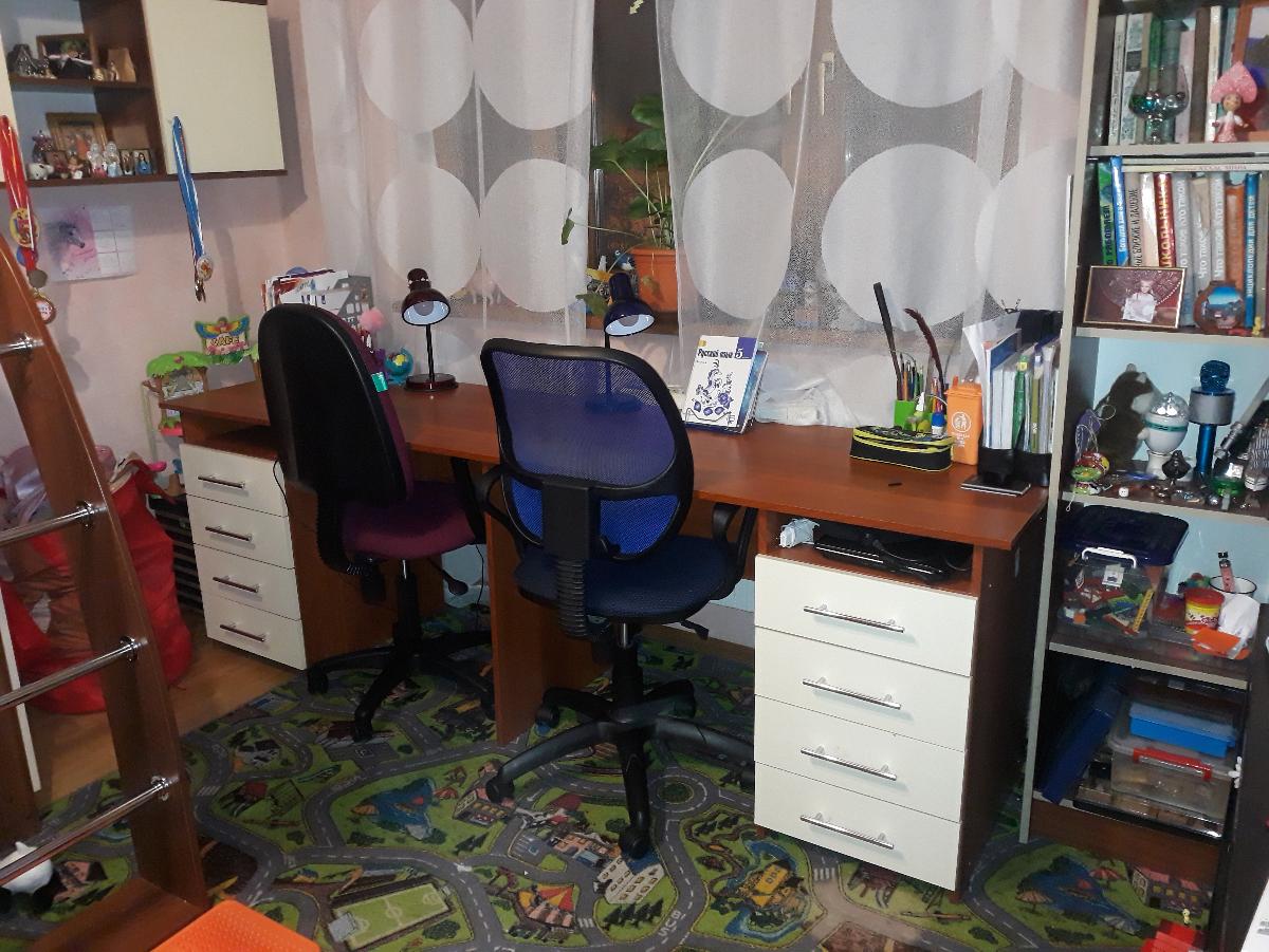 Стол очень нравится, удобный и красивый!Делали по нашим размерам.Рекомендую к покупке, если у вас двое деток.