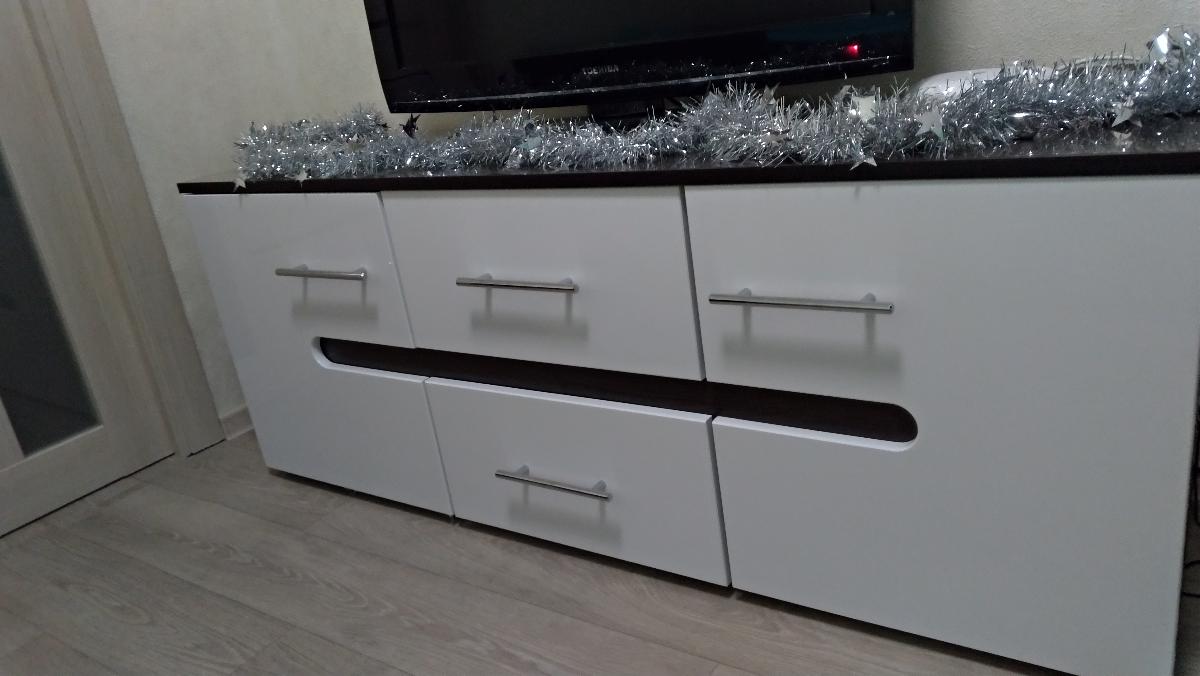 Недавно приобрели такую стенку + шкаф. Отличный вариант для небольшой гостиной.  Шкаф и пеналы вместительные, удобны для применения. Внешне стенка смотрится очень даже красиво! Можно выбрать желаемый размер шкафов на сайте и подобрать цвета. Доставка в срок, без опозданий.  Упаковано хорошо. Качество не идеальное конечно, но своих денег стоит однозначно!