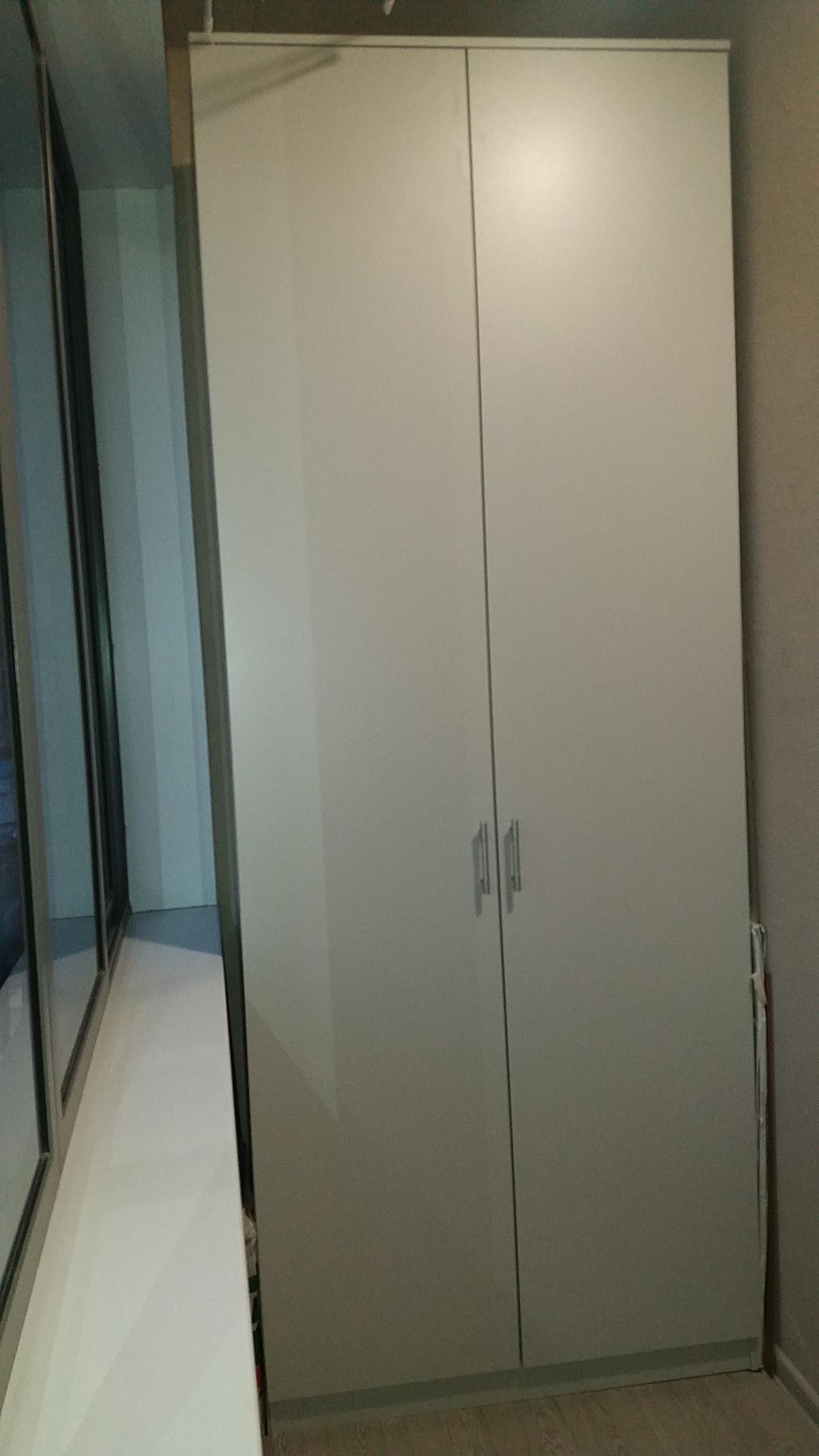 Заказ 00000450591. Заказали шкаф на балкон. Из всех просмотренных мной сайтов, здесь была самая оптимальная цена. Больше всего понравилось то, что не надо было вносить предоплату. Выбрали нужный размер, поскольку у нас достаточно высокий  потолок, высоту выбрали 2600, выбрали нужный цвет. К оформлению заказа и доставке нареканий нет, все быстро, оперативно. При сборке, т.к. шкаф широкий, и развернуть его потом уже было нельзя, сборщик не вставил только 1/4 стенки (на фото видно), но в тех условиях, которые у нас были, это был лучший вариант, мы бы наверное сами вообще не смогли бы стенку прибить. Так что довольны. После этого еще потом заказали 2 дивана, все так же без проблем, и ткань подобрали, потом передумали и выбрали новый цвет, все без проблем, без брака. Еще и в подарок бонусом тумбу получили, было приятно.