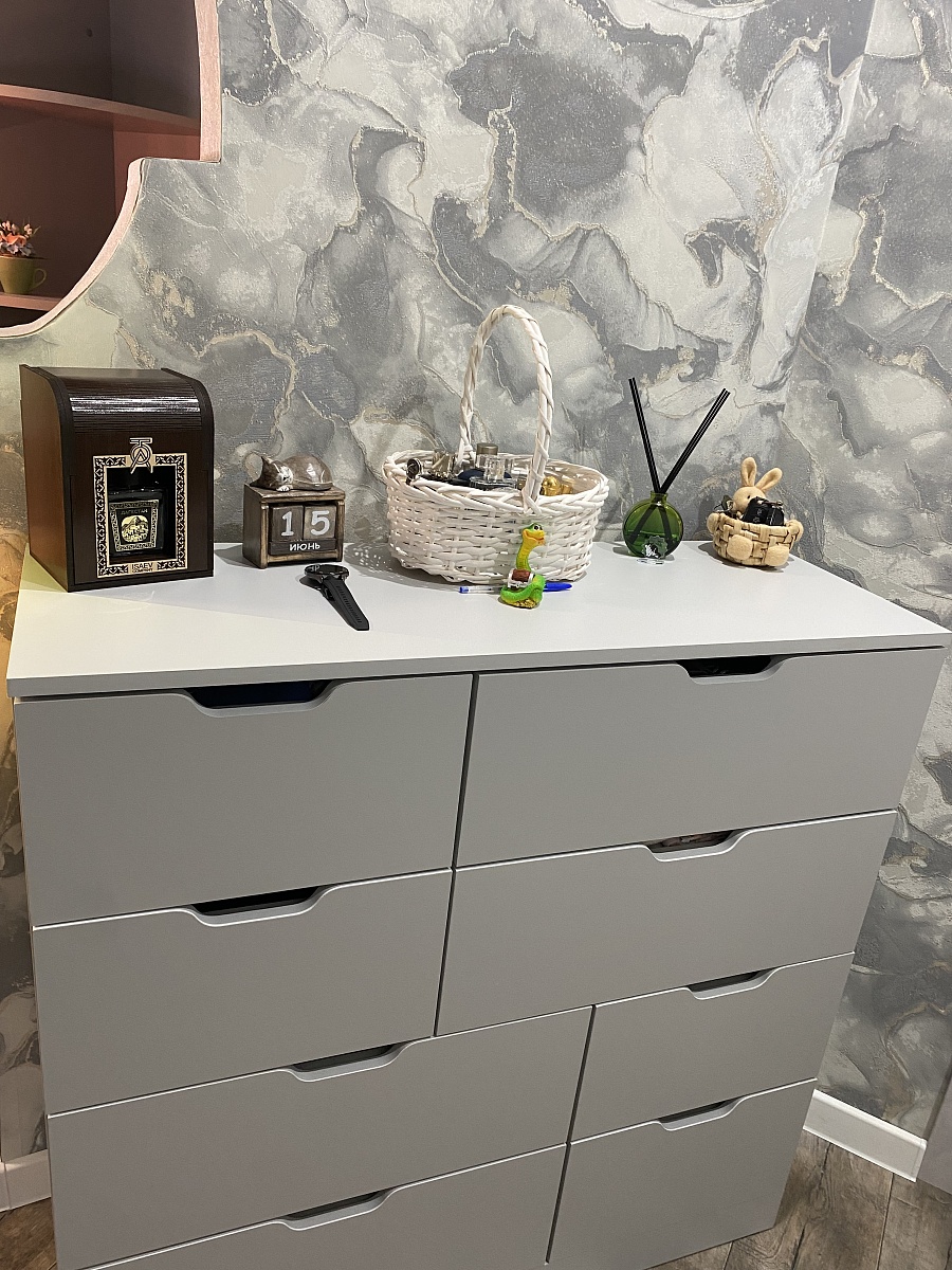 Хочу оставить отзыв о данном комоде. Заказывали через сайт с доставкой дома в феврале 2025 года. Комод искали очень долго, так как нигде именно серого цвета не было, сколько магазинов и сайтов не пересмотрела, еще что очень нравится в данном магазине, что можно подогнать мебель по своим размерам, что мы и сделали с комодом) Комод идеально подошел по цвету к гардеробной, просто один в один. Сам комод очень красивый, вместительный и функциональный. Доставка была осуществлена во время. Все комплектующие к комоду были в наличии. Очень довольна покупкой данного комода. Спасибо большое «Бестмебель»! Вернемся к вам, еще и не раз!