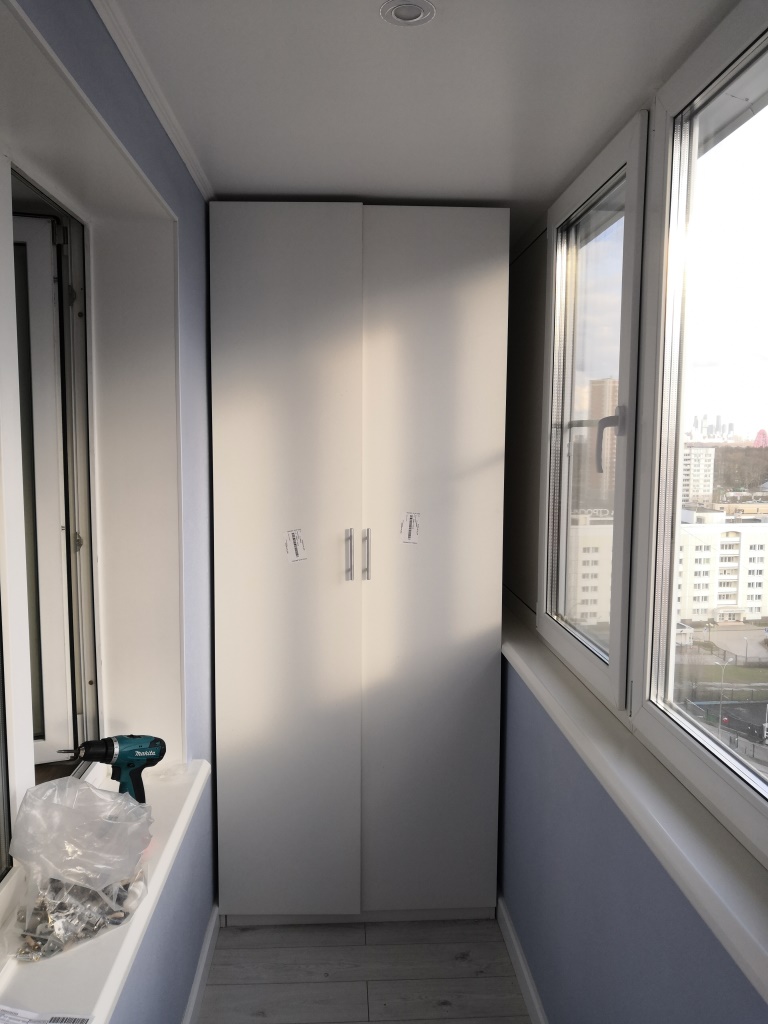 Отличный и дешевый вариант для балкона! Очень довольна ценой, исполнением, быстрым изготовлением, бесплатной доставкой. Сроки не затягивают, консультация отличная.Всего Делала 3 заказа и в итоге было 7 изделий. Претензий вообще нет. Собирали шкаф самостоятельно, все понятно. Если эскиз для сборки напечатан мелко, то можно попросить, чтобы присылали на почту эскиз, очень удобно! Совет для заказывающих - лучше переплатите и закажите "кромку 2 мм для всех видимых деталей" - не пожалеете качеством! РЕКОМЕНДУЮ!