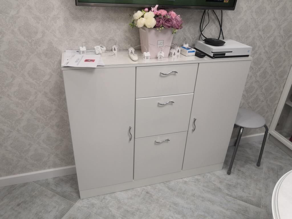 Отлично вписался комод на кухню под телевизор. Заказывала урезанный цоколь сзади, чтобы комод встал вплотную к стене и не мешал "толстый" цоколь.Очень довольна ценой, исполнением, быстрым изготовлением, бесплатной доставкой. Сроки не затягивают, консультация отличная.Всего Делала 3 заказа и в итоге было 7 изделий. Претензий вообще нет. Собирали шкаф самостоятельно, все понятно. Если эскиз для сборки напечатан мелко, то можно попросить, чтобы присылали на почту эскиз, очень удобно! Совет для заказывающих - лучше переплатите и закажите "кромку 2 мм для всех видимых деталей" - не пожалеете качеством! РЕКОМЕНДУЮ!