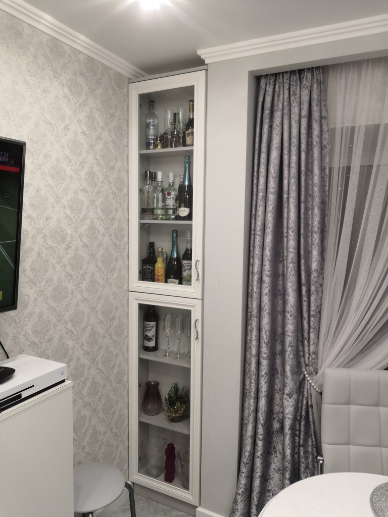 Отличный стильный и красивый бар получился! Все по моим размерам, с нестандартным цоколем, чтобы не снимать плинтус. Вошел просто идеально! Да и сам бар получился идеальным!Очень довольна ценой, исполнением, быстрым изготовлением, бесплатной доставкой. Сроки не затягивают, консультация отличная.Всего Делала 3 заказа и в итоге было 7 изделий. Претензий вообще нет. Собирали шкаф самостоятельно, все понятно. Если эскиз для сборки напечатан мелко, то можно попросить, чтобы присылали на почту эскиз, очень удобно! Совет для заказывающих - лучше переплатите и закажите "кромку 2 мм для всех видимых деталей" - не пожалеете качеством! РЕКОМЕНДУЮ!