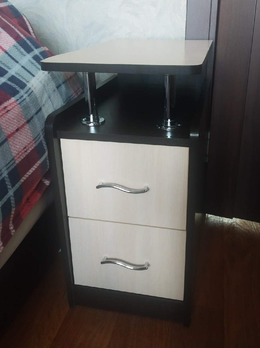 Покупала в карантин два таких шкафа (заказы 291297 и 285464).Понравилось,что сама выбрала цвета шкафа и размер.Доставили быстро и без нареканий.Собирали сами.Не самая моя простая сборка,т.к.очень нечитабельная инструкция,но ничего,справились) .Стандартная фурнитура,конечно,плохая,об этом сразу предупреждали операторы,но брали стандарт,чтобы потом купить такую,какая нам нужна и нравится.