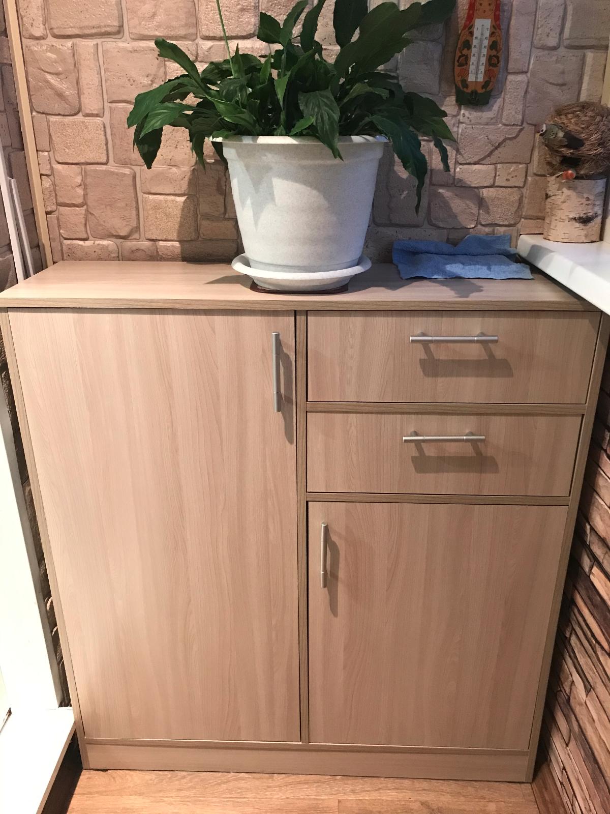 Обратите внимание, тумба немного отличается визуально от заявленной. Верхние ящики открываются от нажатия, сидушка не поднимается. Ручки тоже не такие как на картинке. Покупали тумбу, что бы максимально подходила по цвету и размеру к нашей прихожей. Собирали сами 2 дня, не все пропилы совпадают. Выглядит красиво, сидушка мягкая. Удобно, что есть 2 комодных ящика, в одном храним губки и салфетки для обуви, в другом перчатки и детские шапки. Цвет брали дуб Сомона и белый глянец, цвет дуба немного теплее, чем наша стенка, но если не приглядываться, то не сильно видно. Нигде не могли найти тумбу нашего цвета и шириной 80см, в этом магазине можно самим выбрать размеры. Берём здесь мебель уже в третий раз. Всем советую!