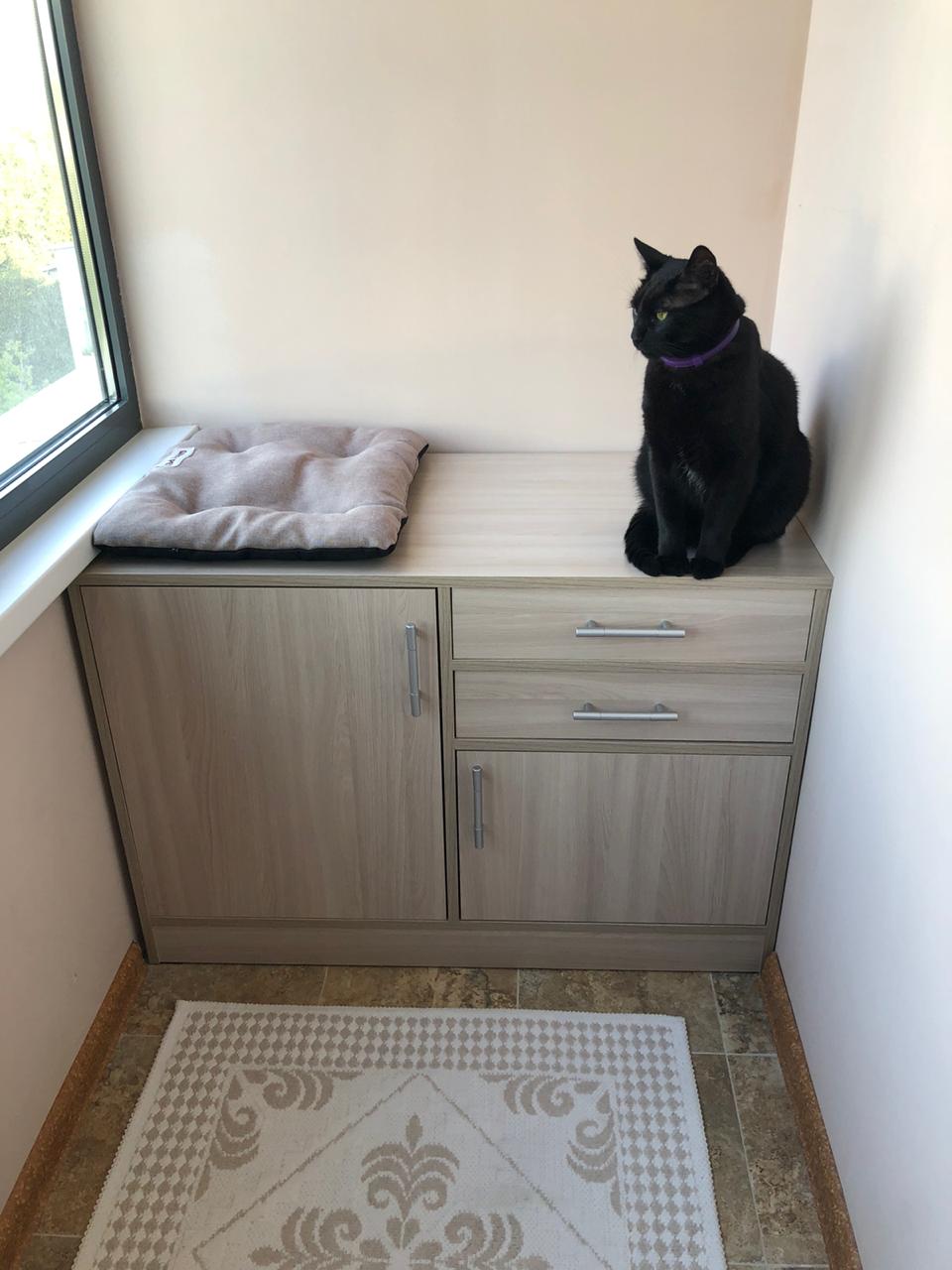 Тумбу покупали для кота!) шутка. На самом деле искали, куда бы и во что бы на балконе спрятать вещи (ведро, тряпки, ящик с инструментами, ящик с овощами, банки и прочий нужный "хлам"). Увидела в отзывах именно этот вариант и поняла, что влюбилась. Причем и стандартный цвет и фурнитура прям то, что было нужно. Порадовала оперативность, т.е. я оформила заказ на сайте и мне практически сразу позвонил менеджер и уточнил детали (параметры не совсем стандартные - ширина, высота вплоть до миллиметров высчитывались, чтобы вписалось идеально). Делали ее в течение 2х недель, доставка бесплатно до подъезда. В условиях "пандемии" скорость и оперативность очень порадовали. Оставлю сайт у себя в закладках. Хоть мебель вся новая и ничего не нужно, но мало ли куда и кому что подсказать потребуется. Спасибо огромное!!!!
