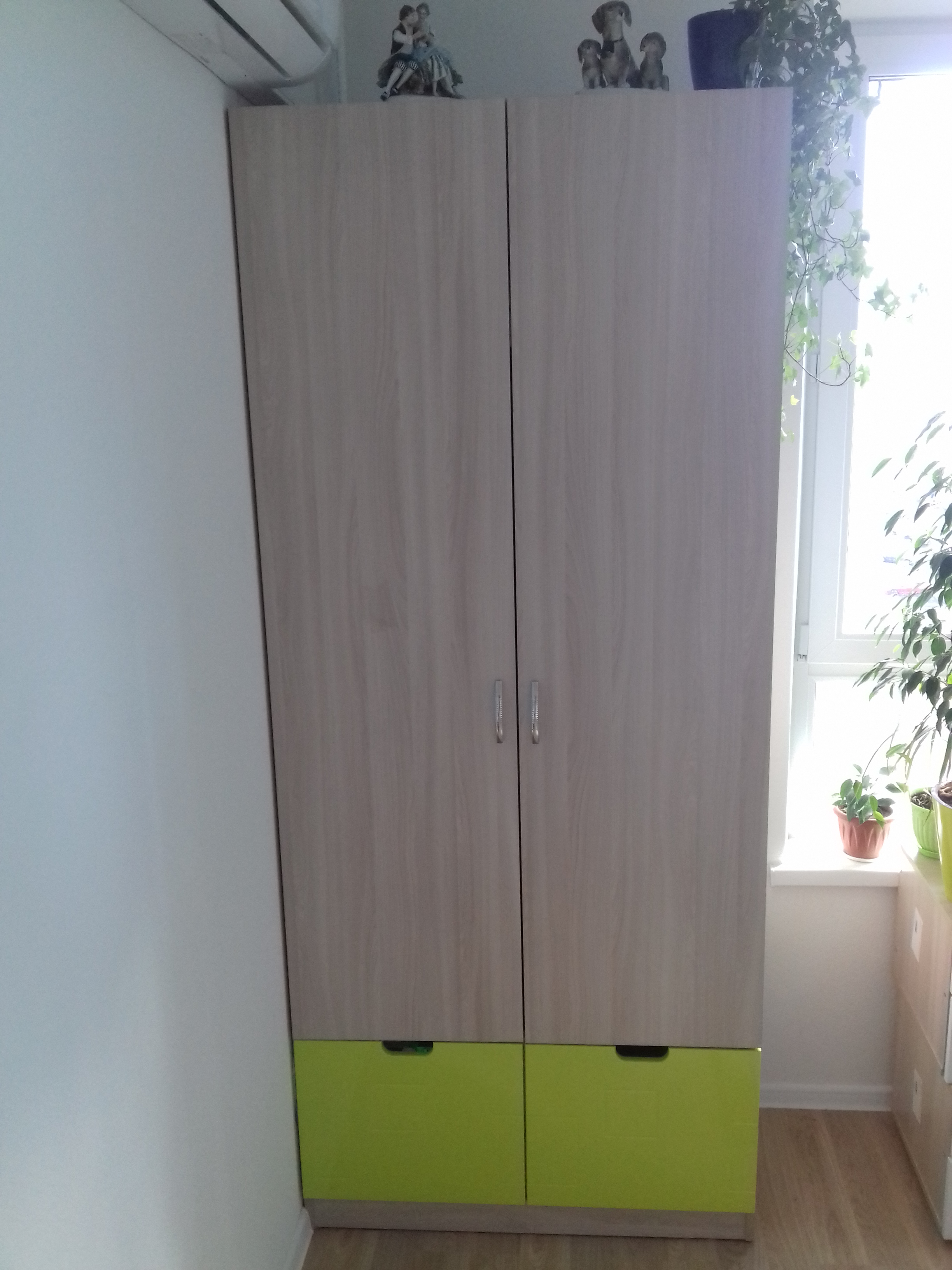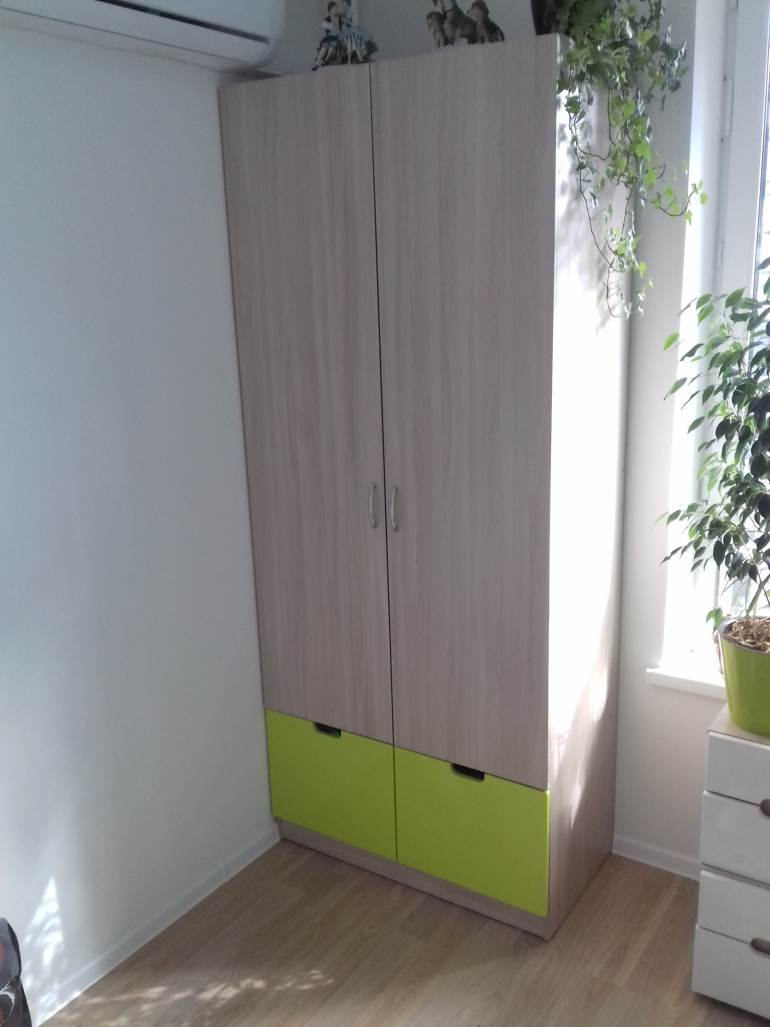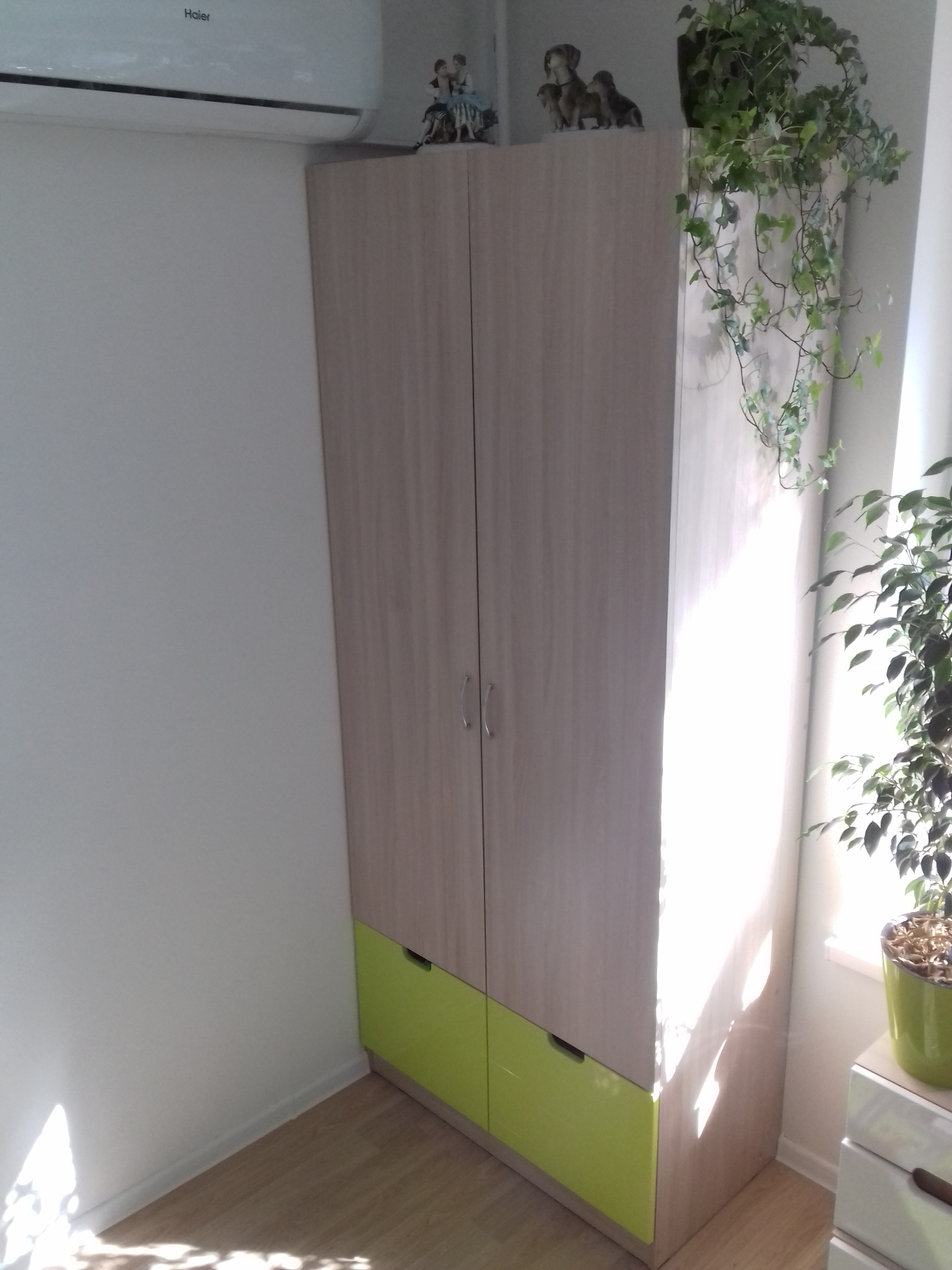Отличный шкафчик. ничего лишнего. Нижние фасады глянцевые с перфорацией. Верхние - ясень шимо. Очень удобно выбрать практически любой размер. Можно подобрать детскую кровать под этот стиль. Заказ 00000308982 от 16.11.2019