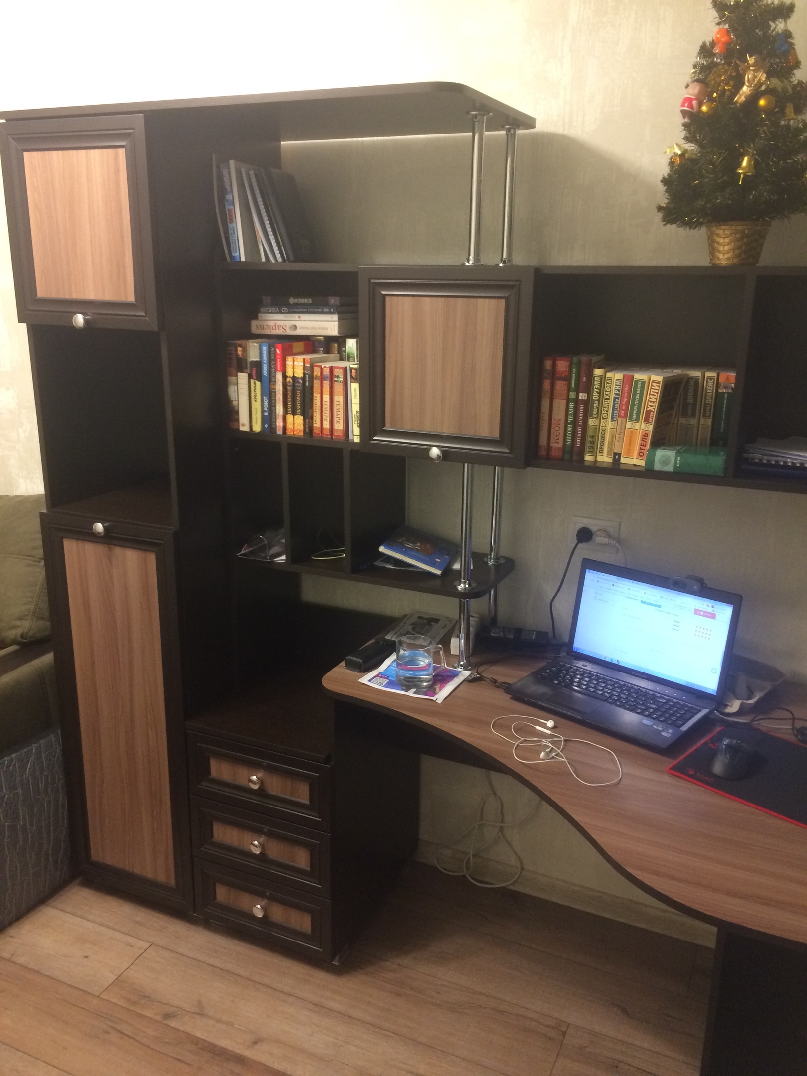 Отдел претензий на мою критику отреагировал правильно и очень конструктивно. Нам изготовили и привезли новые боковые стенки с разметкой под 4-е полки в верхнем отделении. Муж переделал шкаф. Теперь и книги встают нормально, и шкаф смотрится по другому, и я с подарком!!! См. фото. Огромное спасибо за такое очень грамотное решение проблемы!!! Не зря мой муж верил в вашу фирму, молодцы!!!