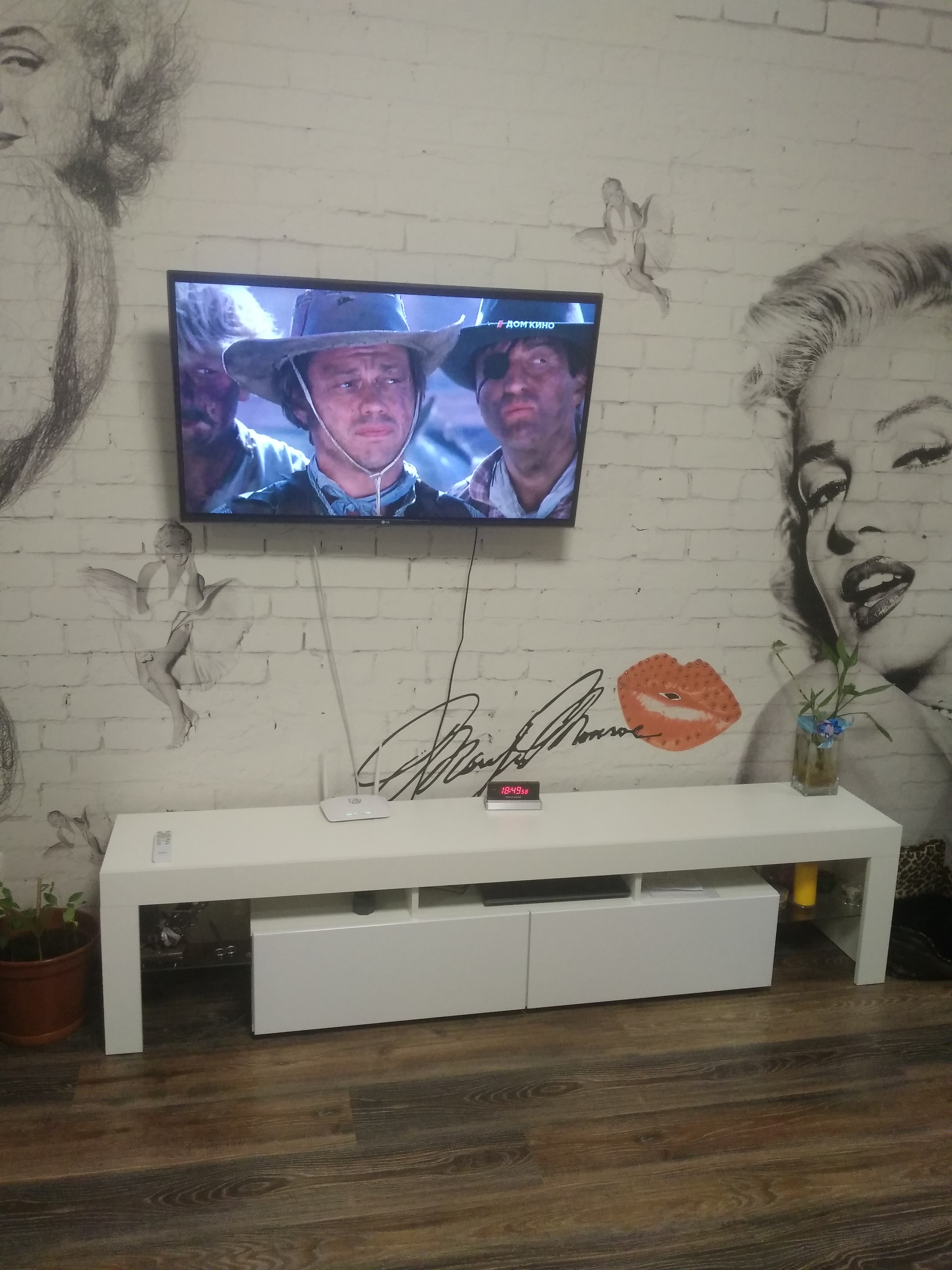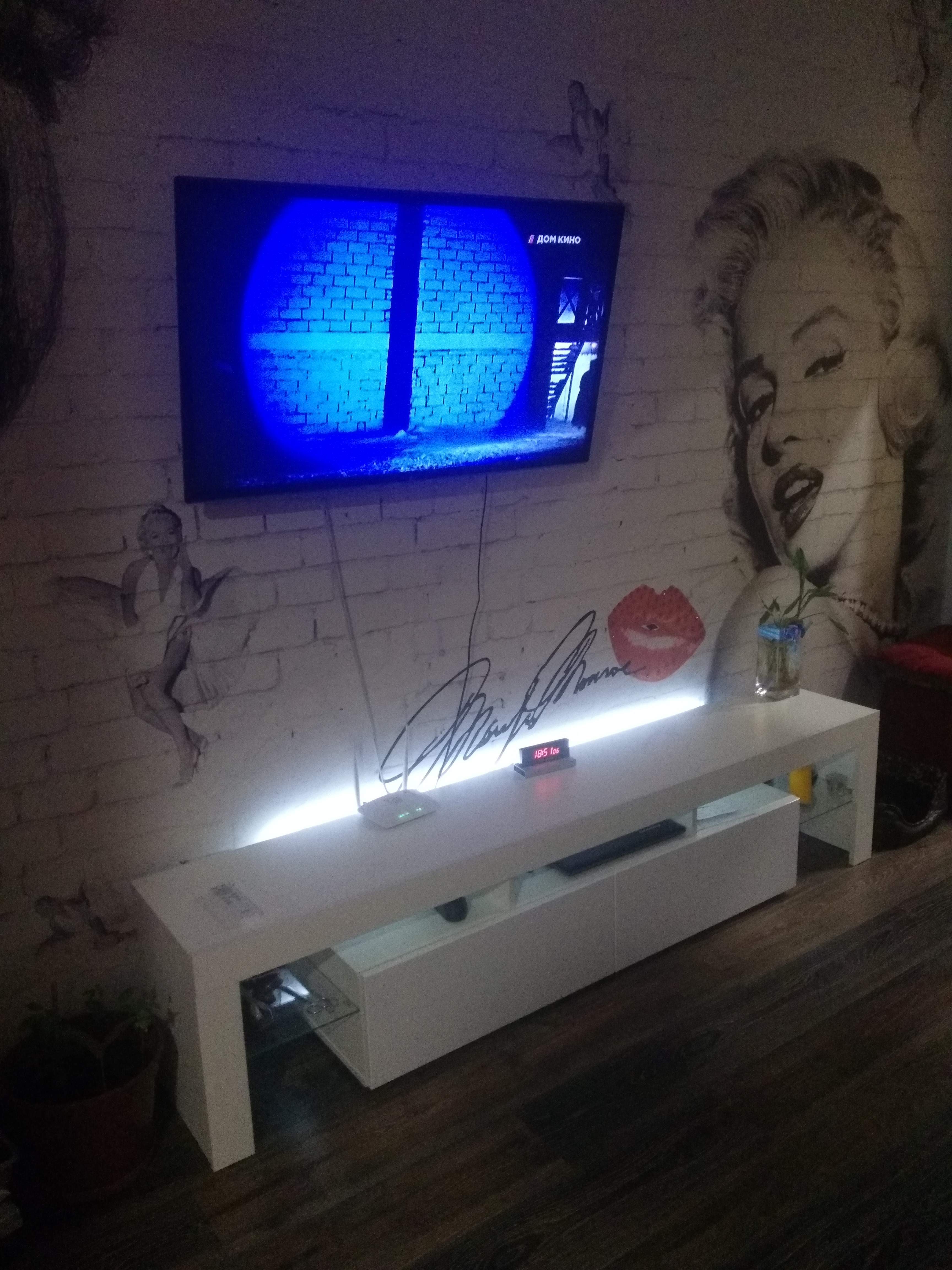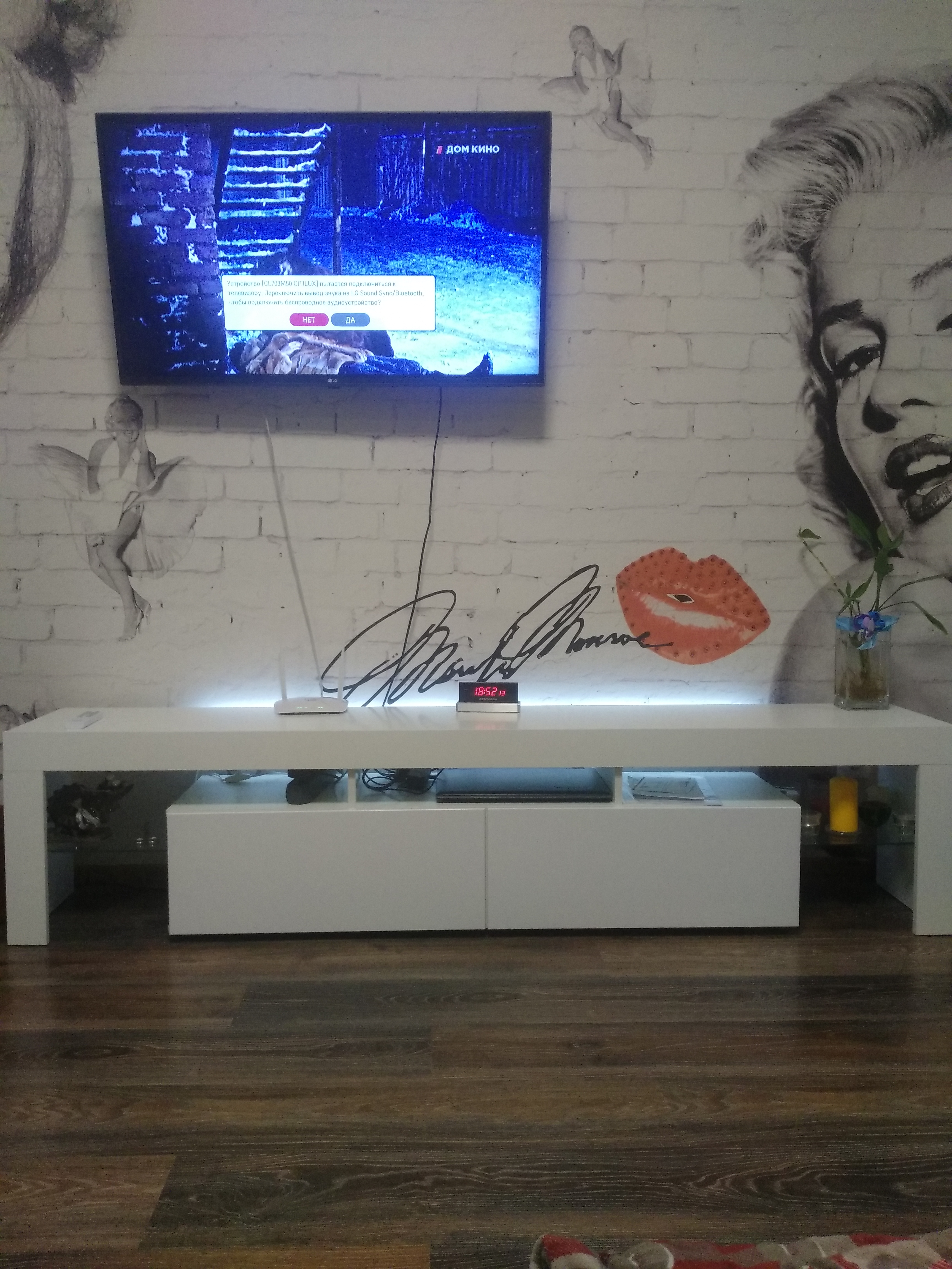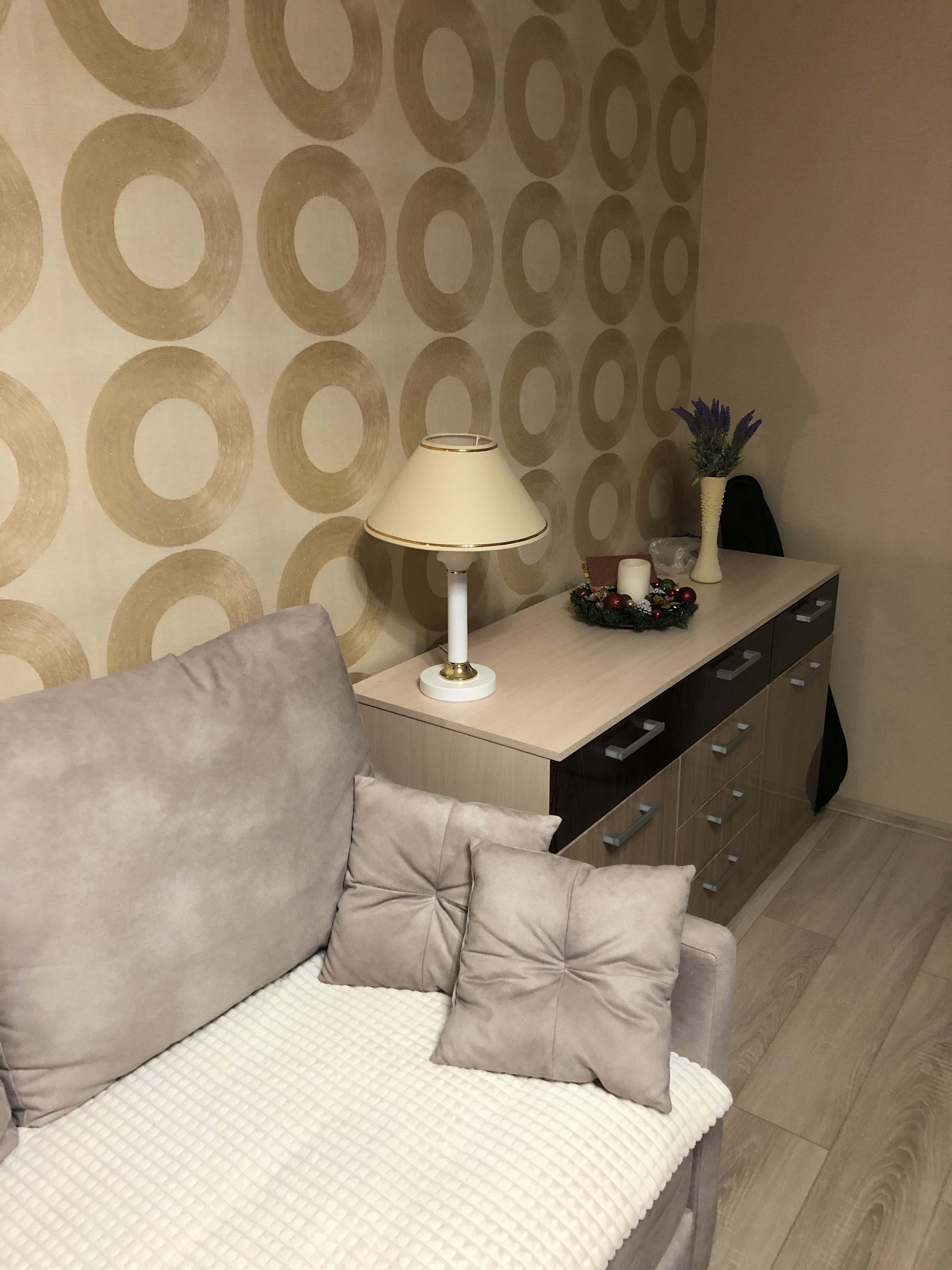 Радует, что в этом магазине можно комплектовать различные комбинации из мебели. На основе этой тумбы мы сделали такую обстановку. И еще одна часть стоит напротив рядом с кроватью как прикроватная тумба.