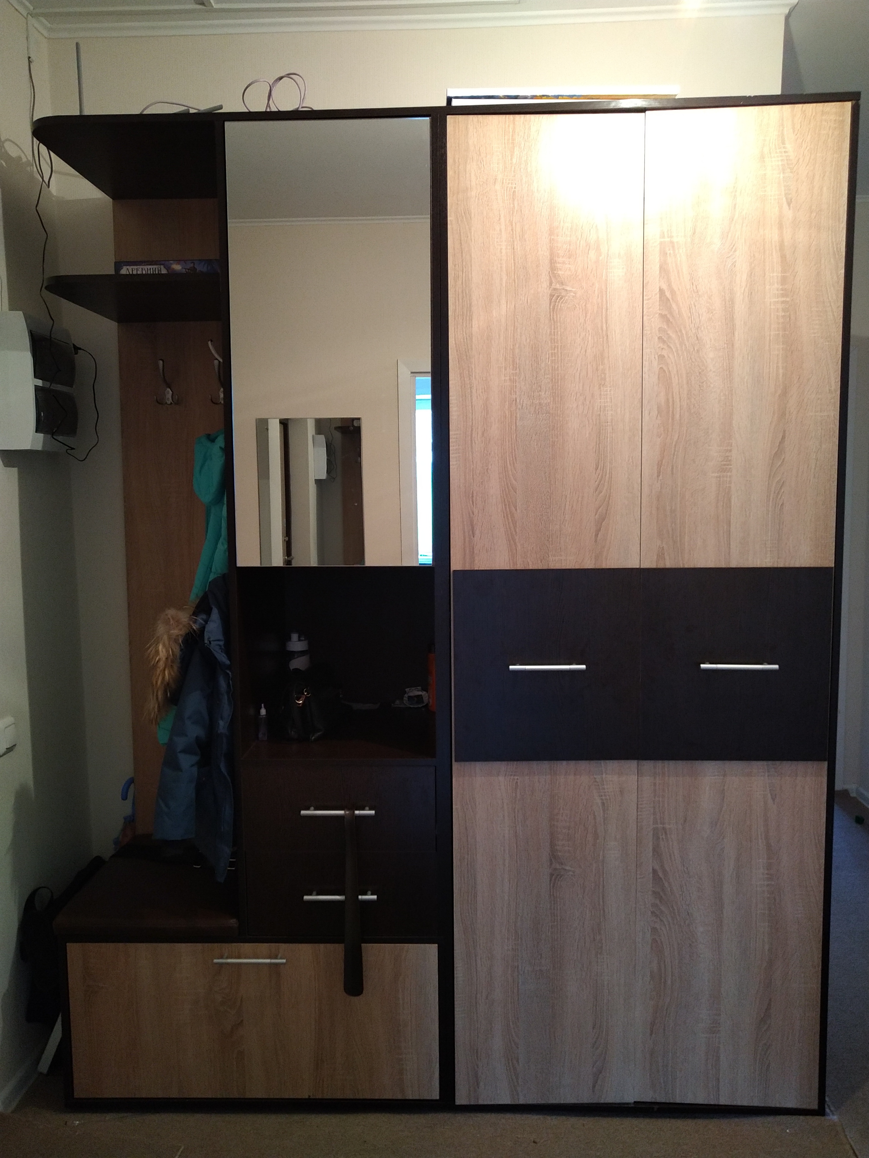 Хорошая прихожая, всё как и одижал с картинки по сайту. Привезли вовремя, доставили до дверей и занесли в квартиру. Собрал сам, ничего сложного, если хоть чуть-чуть понимаешь что и куда тыркать) В целом остался доволен. Спасибо!