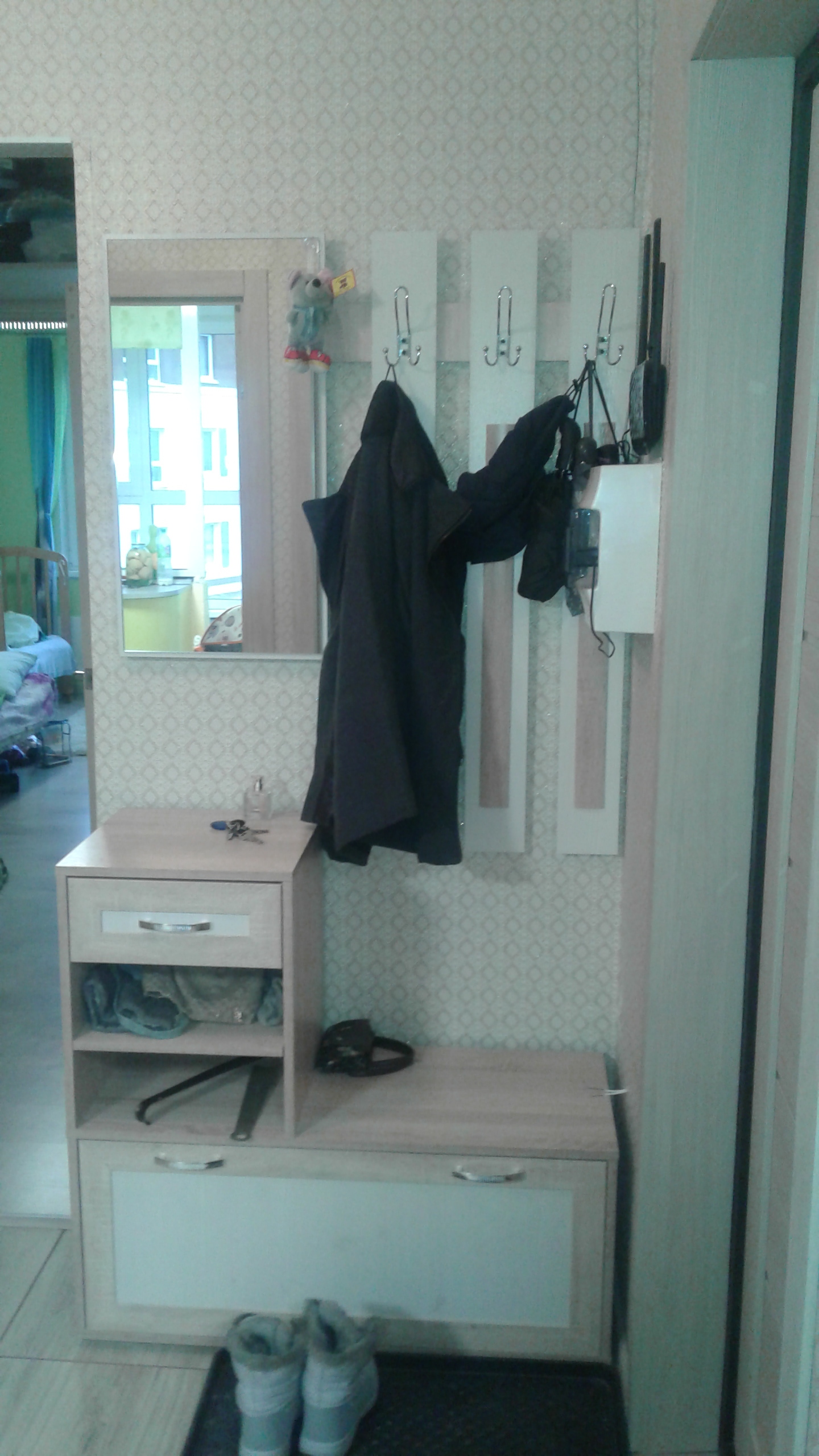 Прихожую доставили вовремя. Собирал муж, единственное, не все панели для декора стали клеить, нас и так все устроило. За 2,5 месяца эксплуатации ничего нигде не отвалилось, не оторвалось. Вешалки удобные.