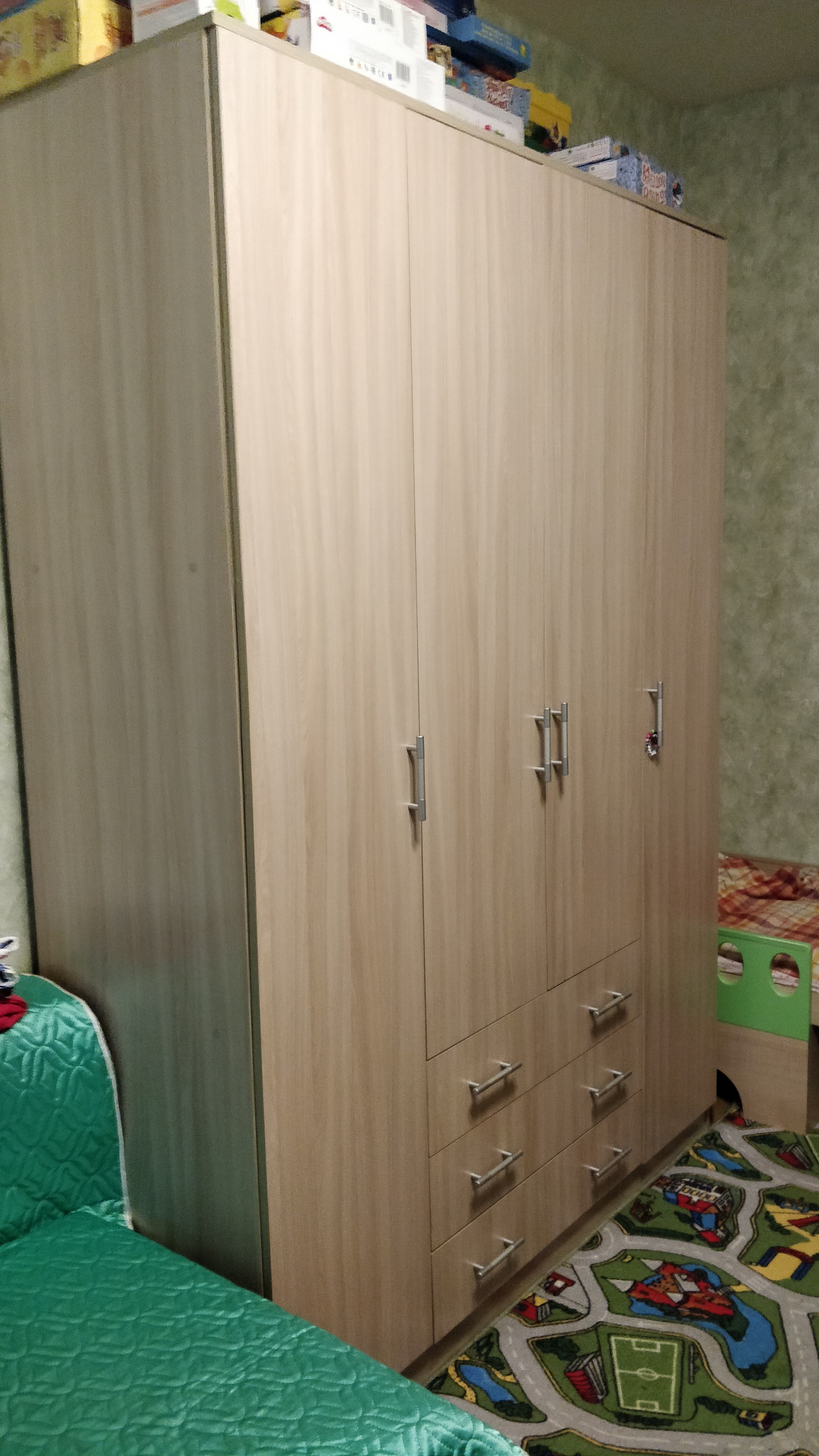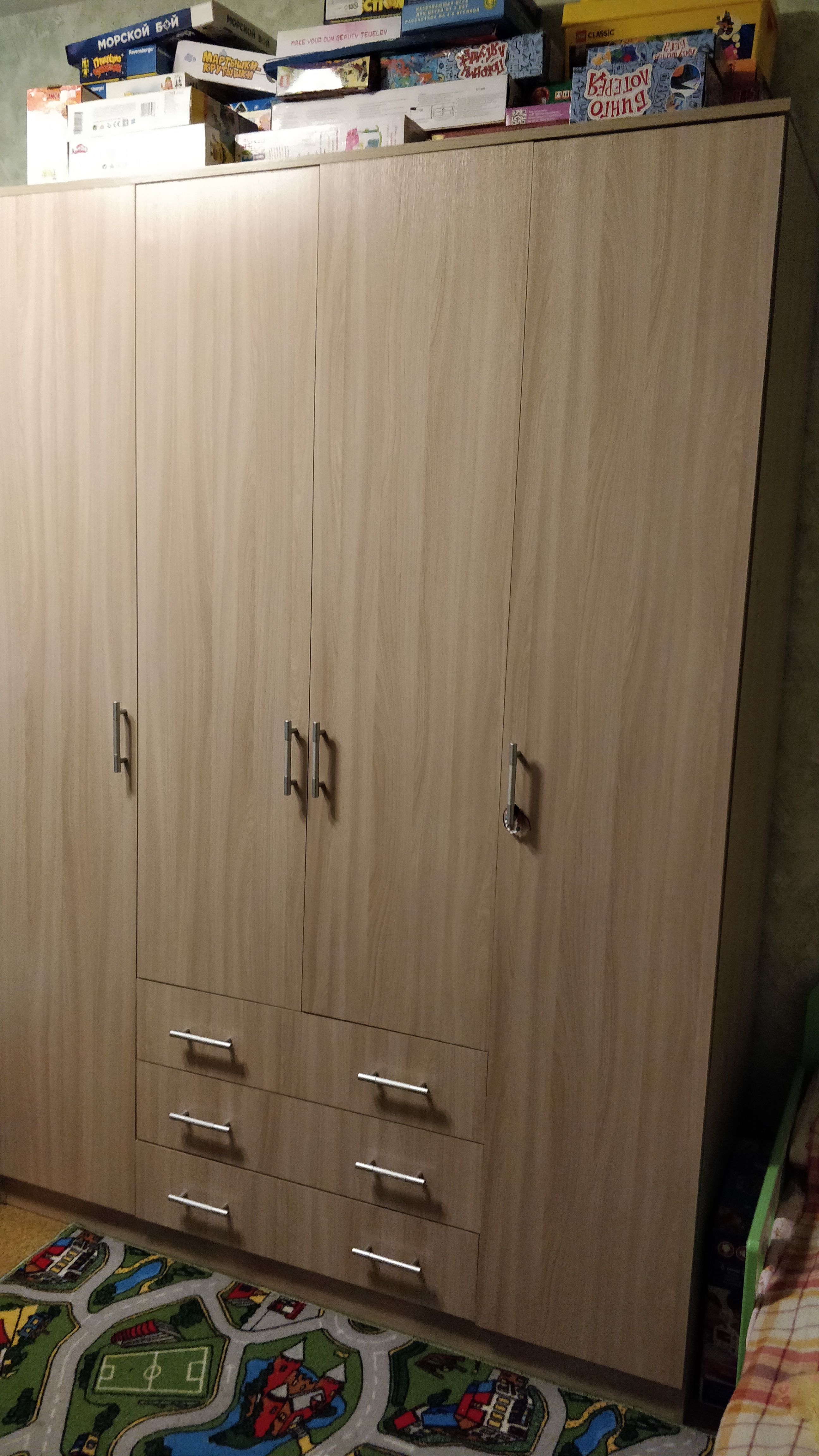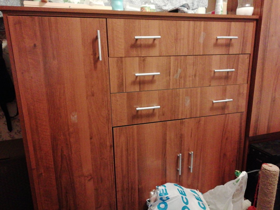 Купили удобный огромный комод. Непонятно только назначение еще одной верхней планки. Сделано все качественно, цвет как в каталоге, сборка была простой.