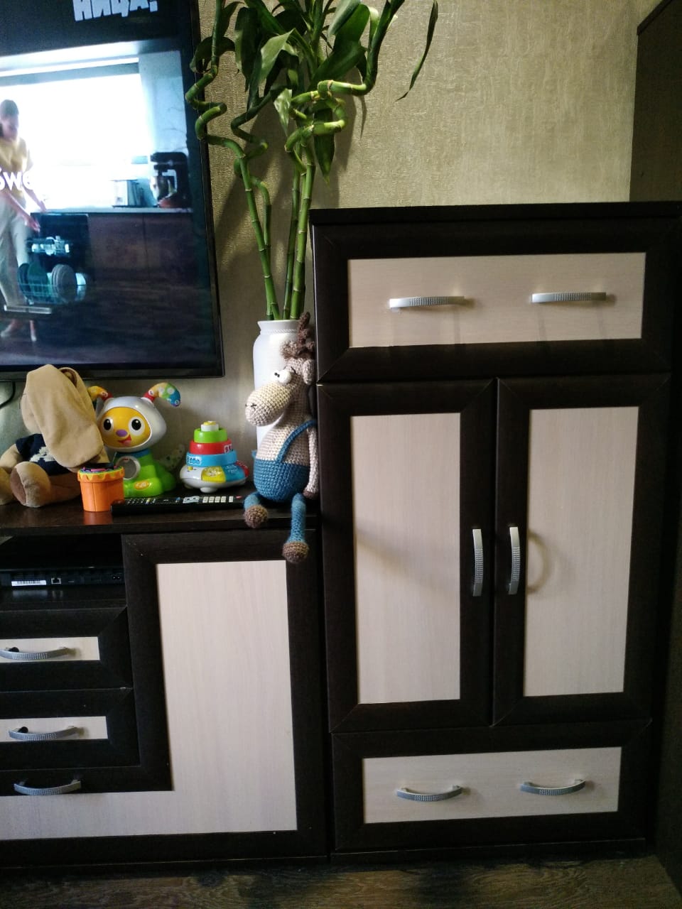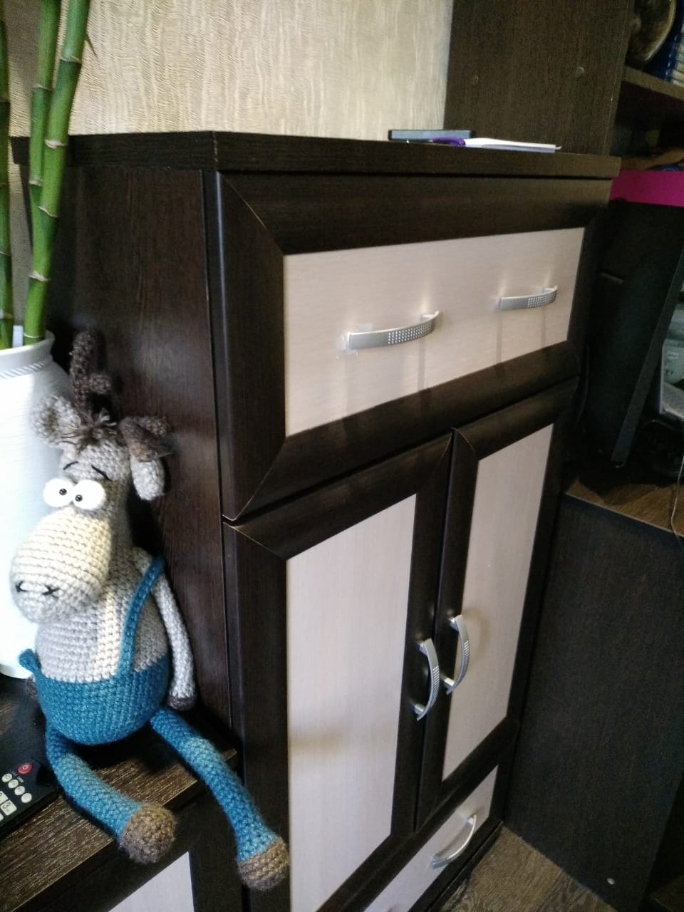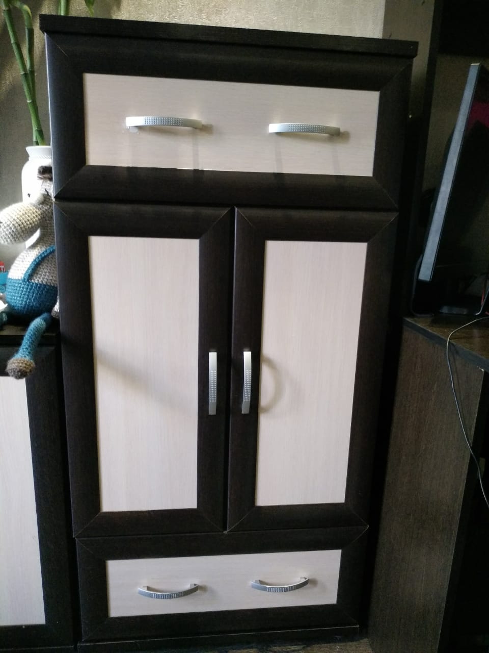 Купили удобный огромный комод. Непонятно только назначение еще одной верхней планки. Сделано все качественно, цвет как в каталоге, сборка была простой.