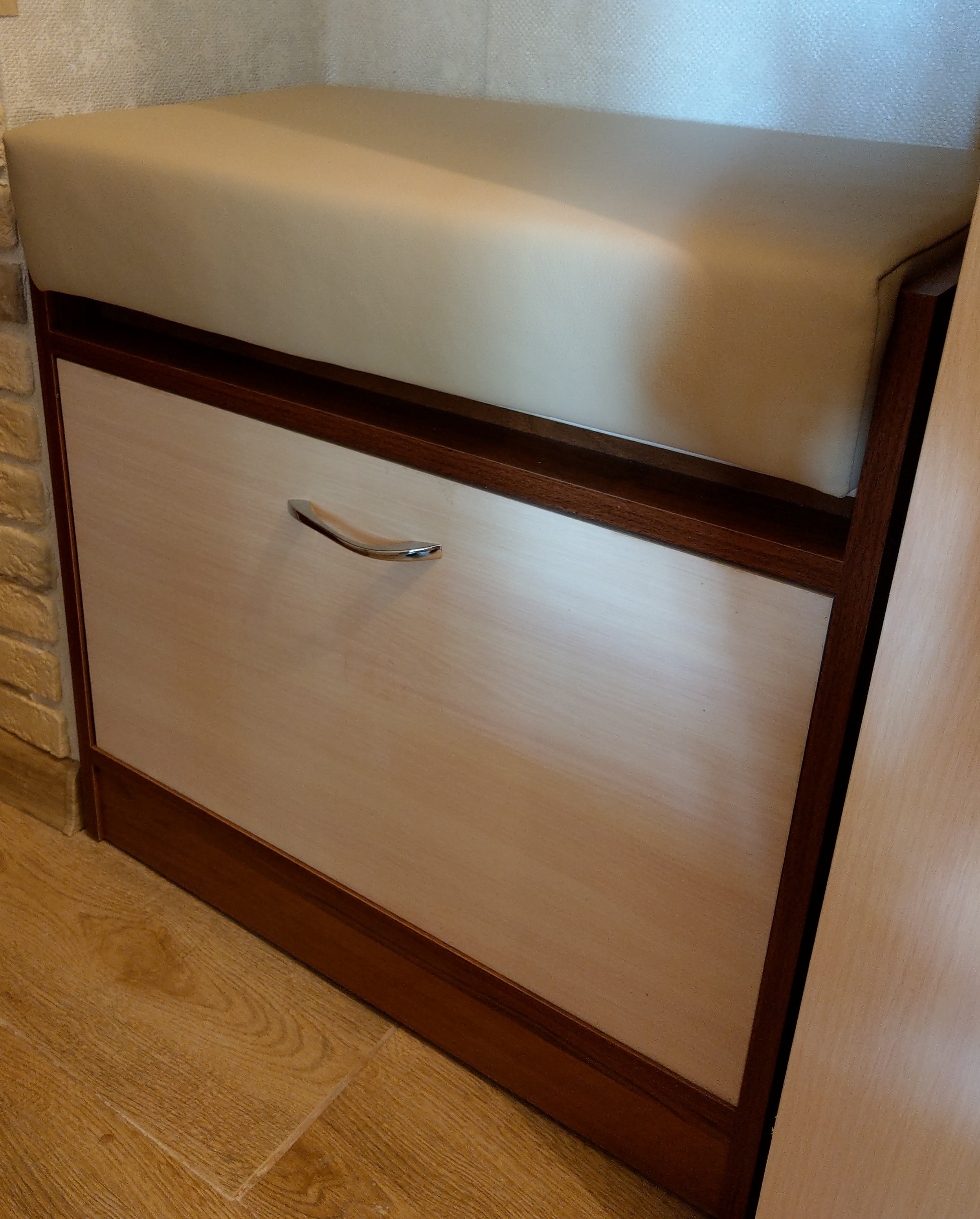 Заказал зеркальное расположение элементов и ширину больше стандарта на 10 см. Прихожая встала в нишу отлично. Так как  цвет орех мария-луиза был в наличии привезли уже через три дня. По доставке вопросов не было, все четко. Собирали сами, были некоторые вопросы, соединили со сборщиками, все объяснили доступно. Прихожая очень функциональная и практичная, цена приемлимая. Внешний вид радует.