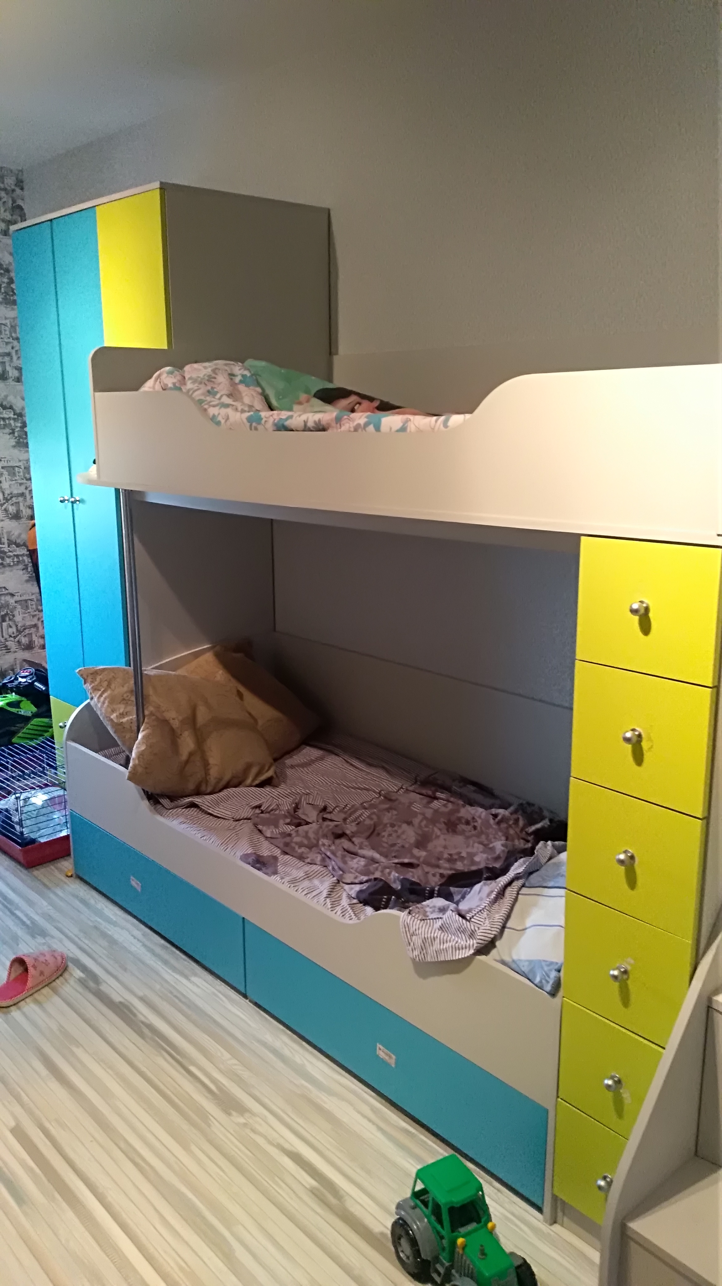 Кровать доставили за две недели. По нашему желанию, внесли кое-какие-корректировки, что очень понравилось. Качество отличное, цвет отличный. Единственный минус отсутствие инструкции по сборке и куча наклеек, которые сейчас не так то просто убрать...