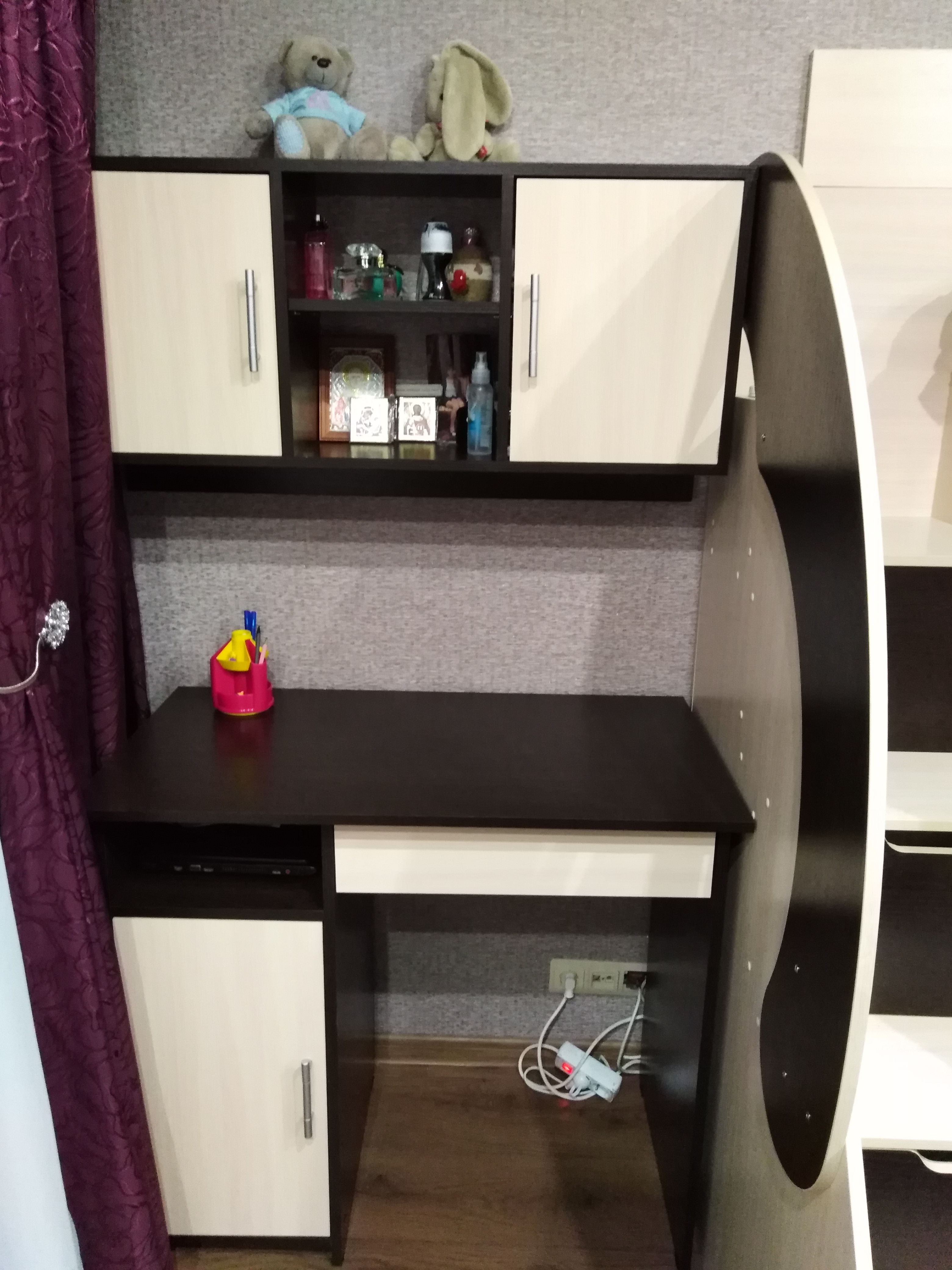 Подбирали мебель в комнату для девочек-подростков, важно было выбрать функциональную, а не просто красивую полку под наши размеры. Также важен был цвет, так как подбирали под цвет двухъярусной кровати. Цвет и размер подошли идеально. Полку подбирали к письменному столу СП-2 BMS , смотрится как комплект. Довольны качеством и доступной ценой.