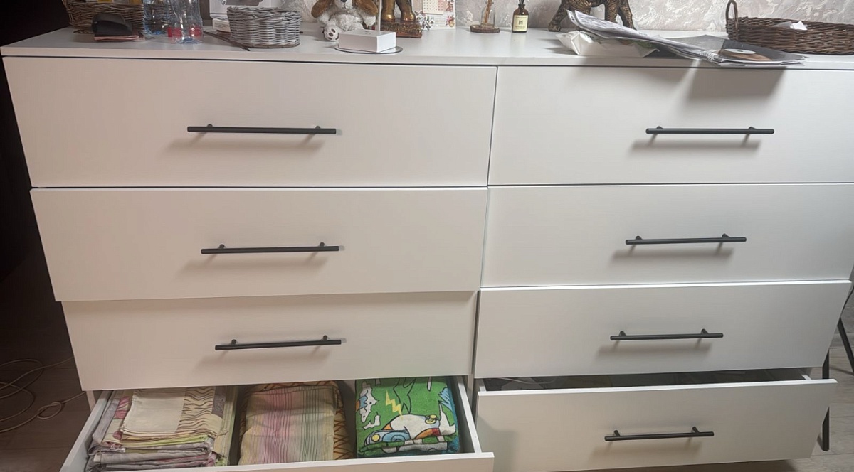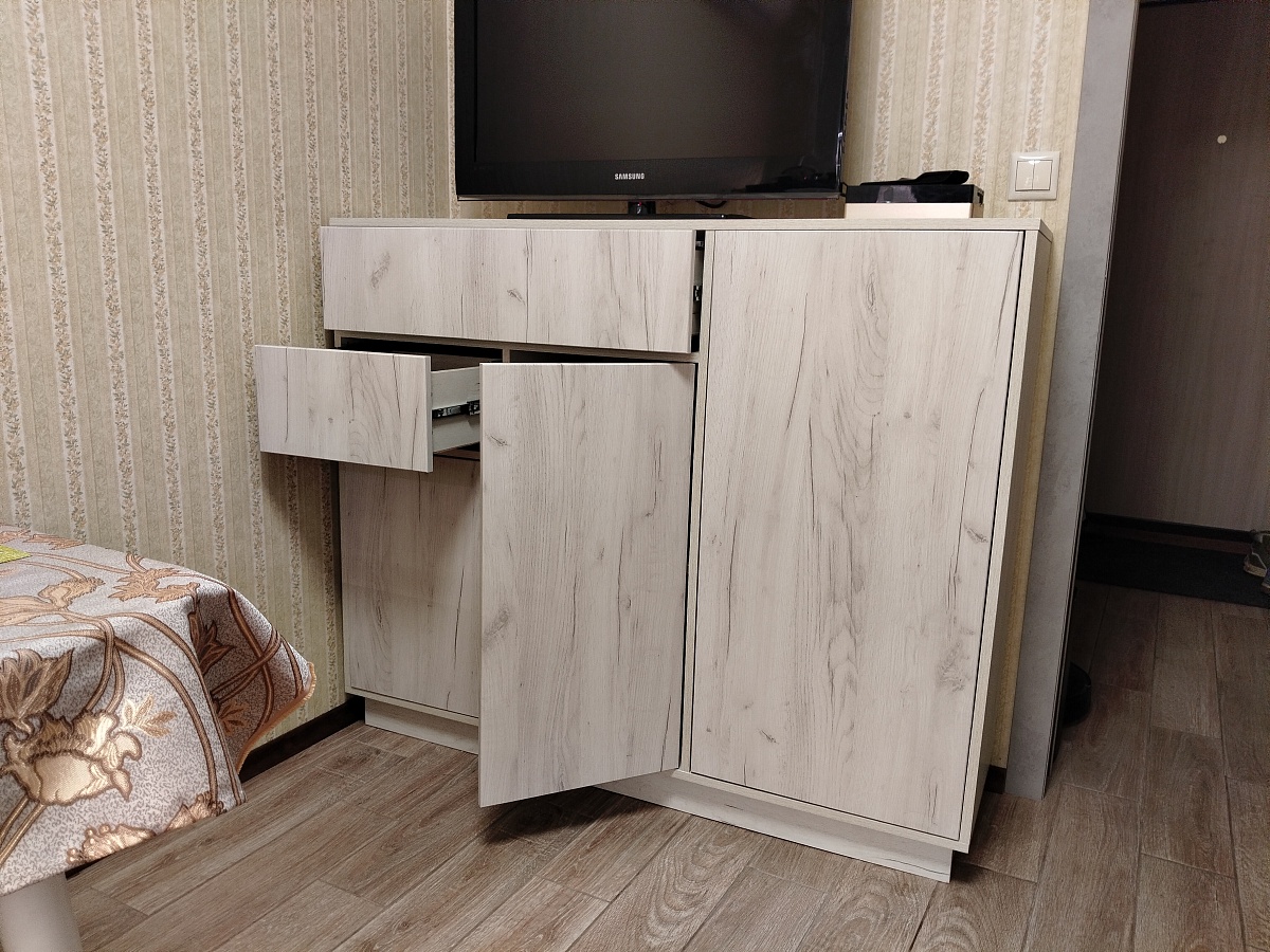 Шкаф качественный, вместительный. Порадовала возможность моделировать размеры.К сожалению, есть и недочёты: во-первых, малопонятная инструкция по сборке(она есть на фото, это всё, один лист с общей схемой)- собирали шкаф сами, и несколько раз приходилось переделывать отдельные моменты, потому что в инструкции нет пошаговой схемы.Во-вторых, зеркало на дверь. В первый раз, не подумав, прикрутили ручку прямо к стеклу (никаких прокладок в комплекте не идет)- в результате стекло сильно треснуло ещё на этапе сборки. Перезаказали дверь (с доплатой), спасибо отделу гарантий, вопрос решили очень быстро! Но и со второй дверью получилось не очень- купили специальные прокладки, дверь повесили, но она сама дала трещину (на фото можно увидеть). Радует, что не критично, пока будет так. Но покупателям советую или не брать зеркальную дверь вообще, или купить такой вариант, чтобы ручка монтировалась на дерево, потому что замена вам в некоторю сумму обойдётся. А так шкаф сам по себе очень хороший, и сервис тоже!